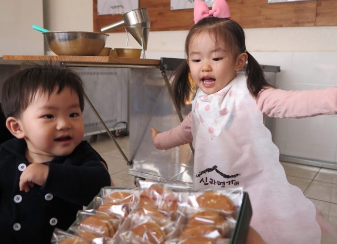 [경주빵 만들기] 여행의 마지막 날 아침이 밝았습니다. 2박3일의 짧은 여행도 끝이 다가오네요. 참 아쉽습니다. 서현이 외할아버지께서는 아침에 일이 있으셔서 먼저 부산으로 돌아가셔서 더 아쉬웠어요. 마지막날 아침 스케쥴은 경주빵 만들기로 시작합니다. 앞치마를 하고, 작은 두손에 장갑을 끼고~ 경주빵 만들기 준비 완료~(ง’̀-‘́)ง 선생님께서 경주빵 만들기 재료 준비를 해두셨네요. 베이킹의 기본중의 기본, 계란Read More →