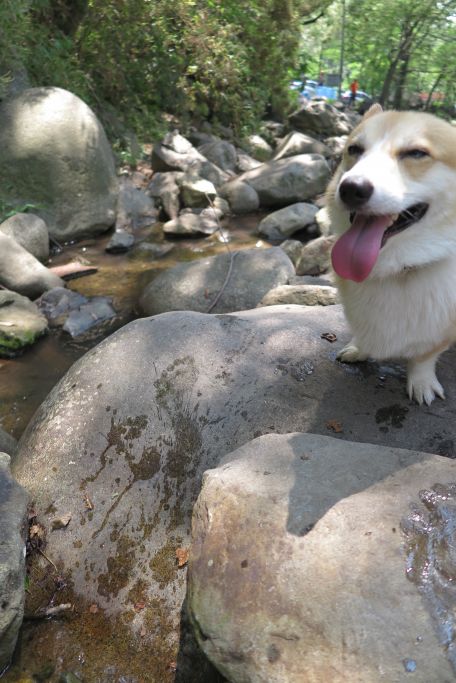 땅이는 신났습니다~ 물 속에 들어가서 첨벙거릴줄 알았는데 발만 담그고 얌전히 놀았습니다. ㅎㅎ