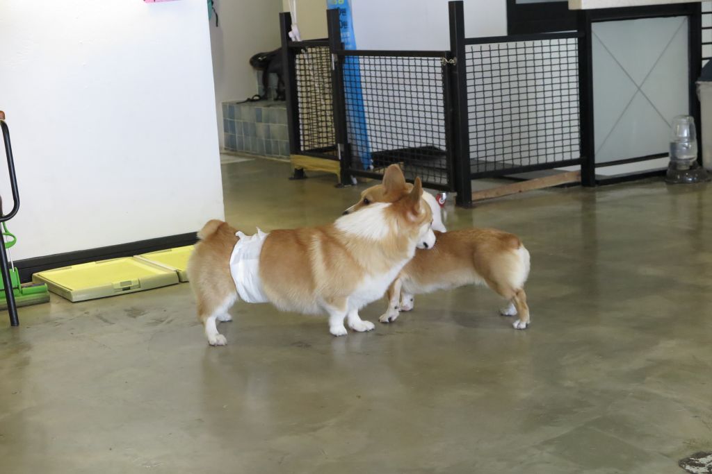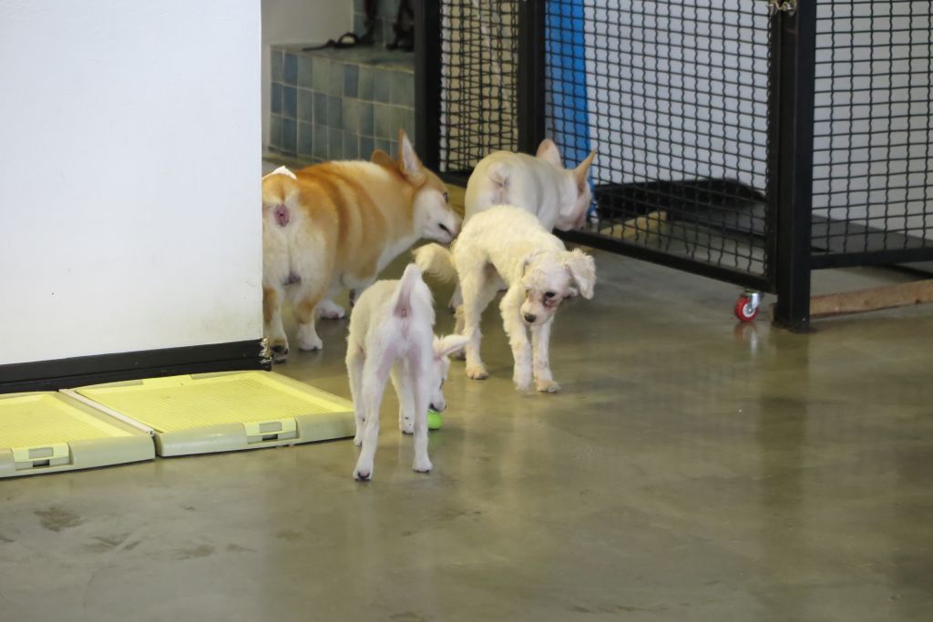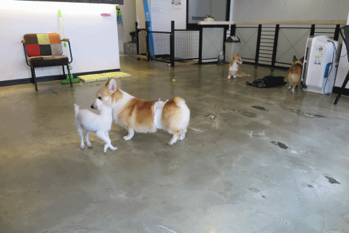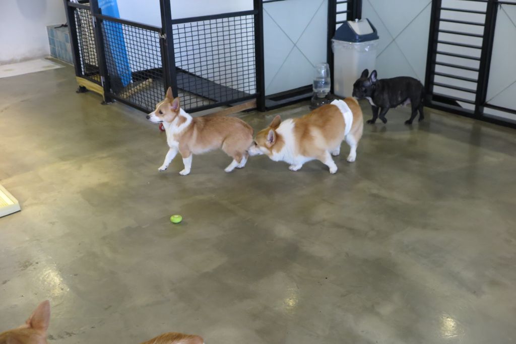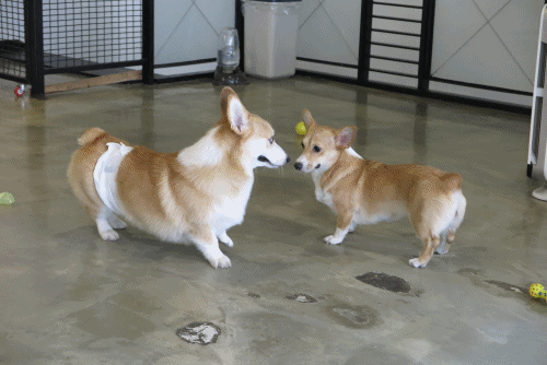 애견호텔도 같이 운영하는 곳이라 호텔링 중인 웰시코기 자매도 있었어요.