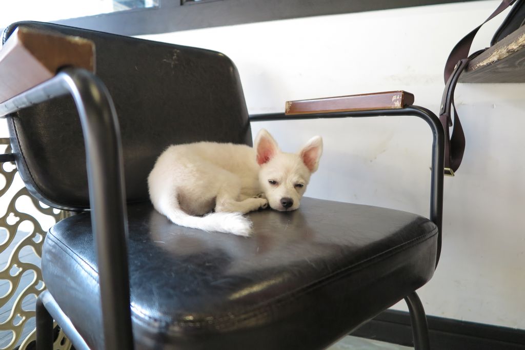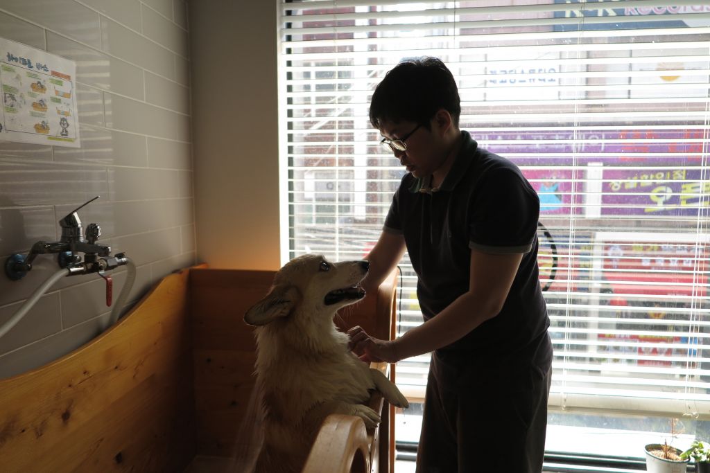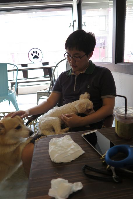 땅이에게 다른 강아지들도 만나게 해주고, 셀프 목욕 시설도 사용하기 위해 애견카페에 방문했습니다.