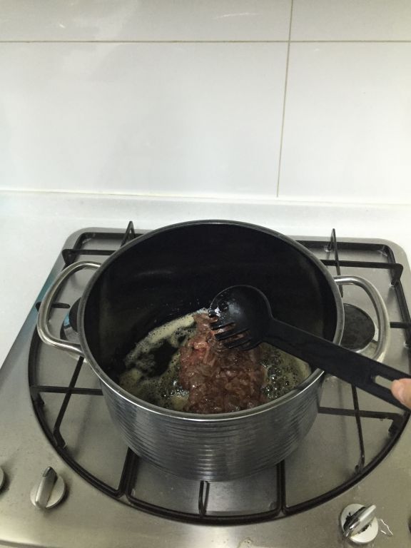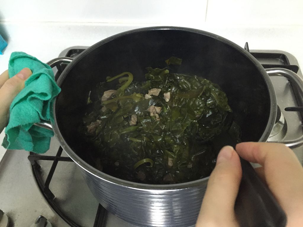 참기름에 고기와 미역을 달달 볶아줍니다.