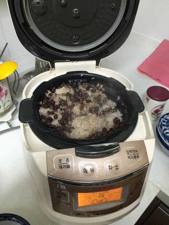 생신상에 빠질 수 없는 팥밥도 밭솥이 미어지도록 준비합니다. (밥솥 열고 깜짝 놀랐습니다 ㅋㅋ)