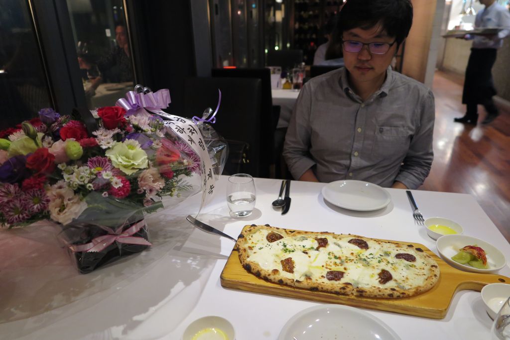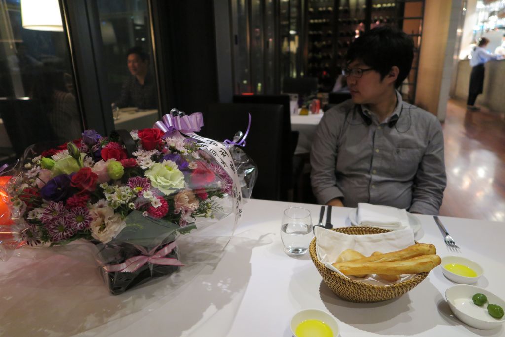 자리를 안내 받아 앉으니 별이 아범이 미리 레스토랑으로 꽃배달을 해두었습니다. ㅠ 감동의 물결이 ㅠ