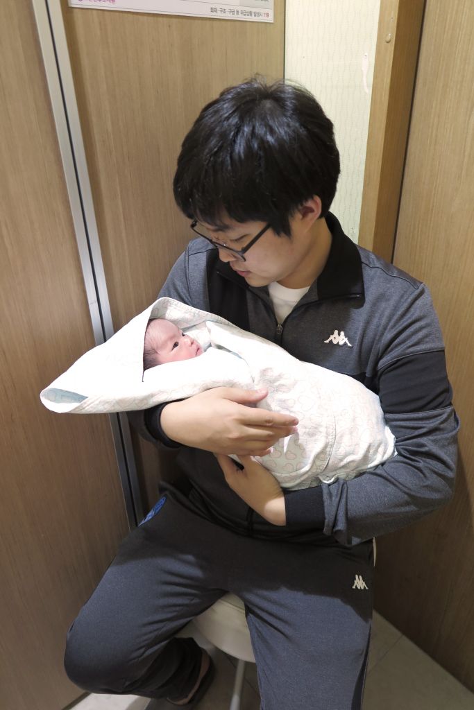 원래 병원에서 산후조리원 올라올때 아빠가 한번 안아보는데 출근관계로 못해서 아쉬웠는데