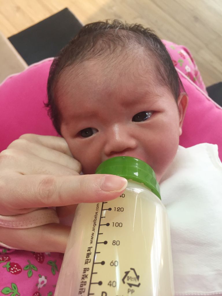 엄마 젖을 직접 먹기보단 유축한걸 젖병으로 먹는걸 더 좋아하는 서현이.