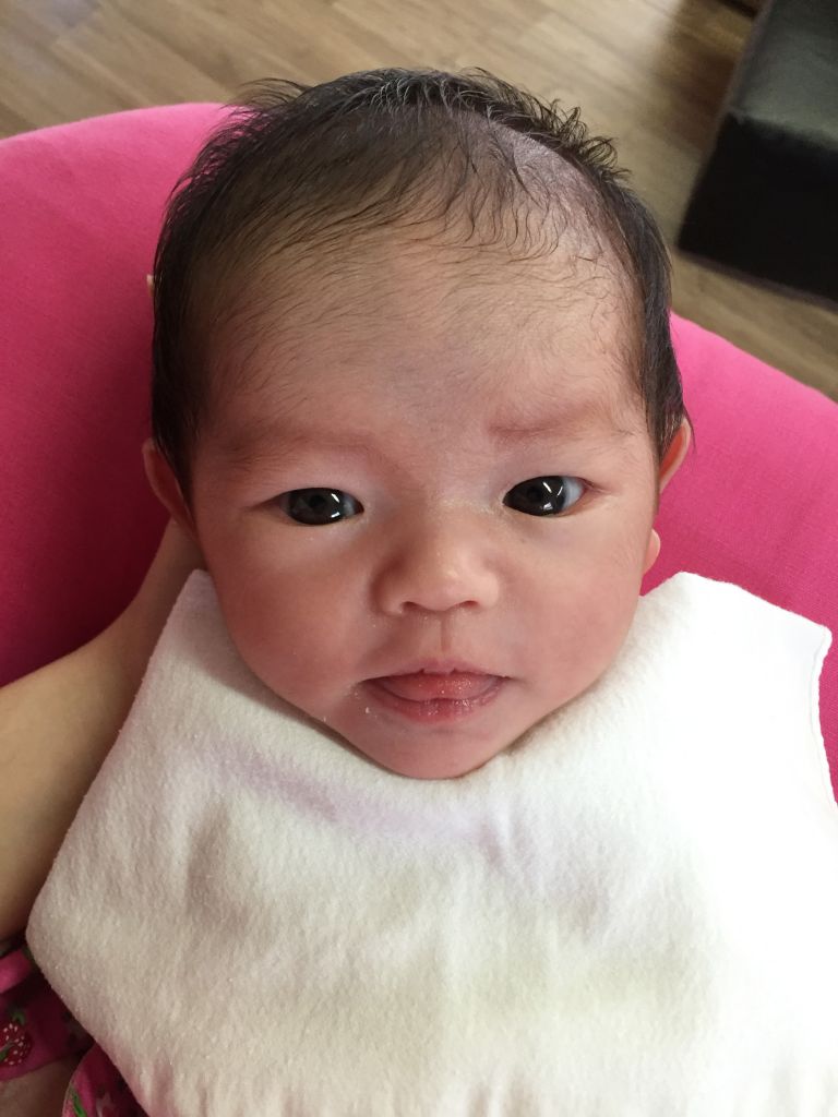 아빠랑 아이컨택~ 성공!! 그 사이 조금 큰거 같네요.