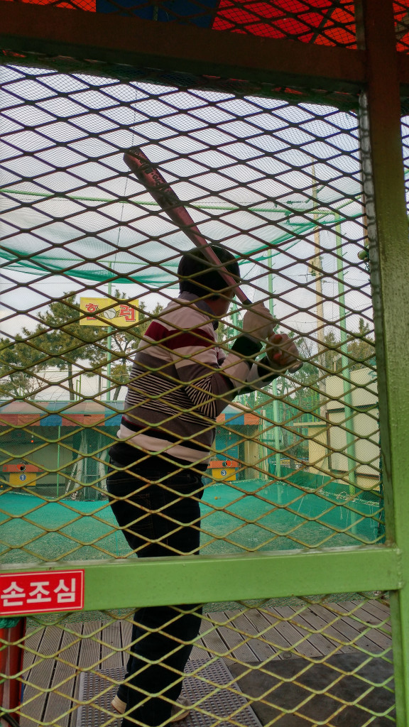 어언 40년 만에 배트를 잡으신 장인어른. 골프로 다져진 스윙으로 폼이 그럴싸 합니다.