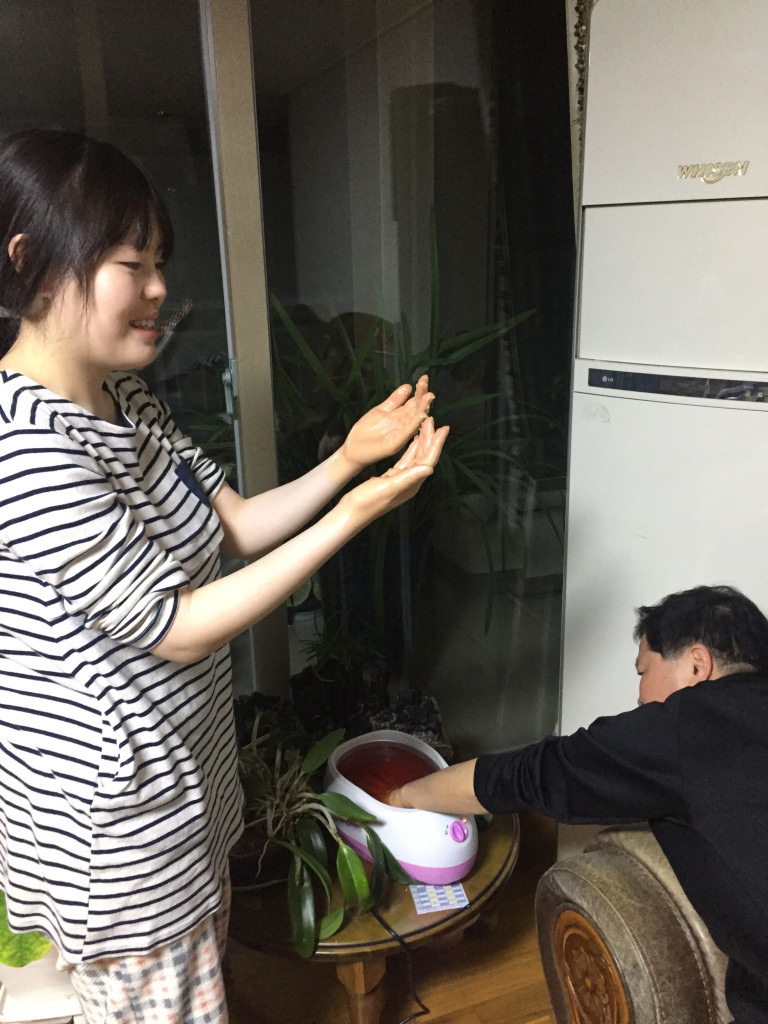 의료용 파라핀으로 손 갈라짐을 방지하려는 시아버지와 며느리~^^