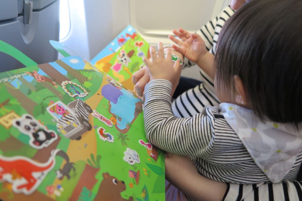 서현이 엄마가 서현이의 쾌적한 비행을 위해 준비한 스티커 놀이북.