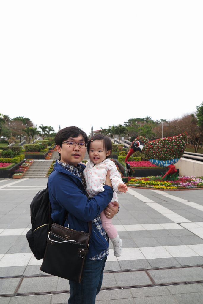 수족관에서 나와서 해양박 공원 내부에서 사진 찍는 랑구와 랑구 엄마.