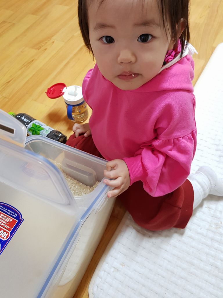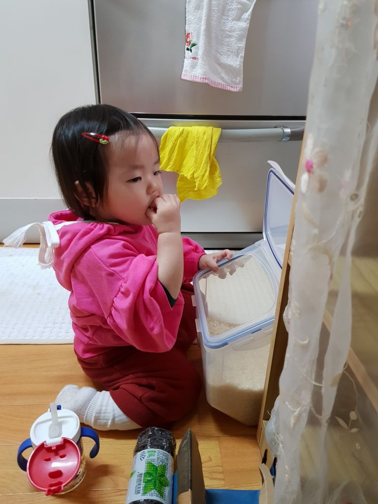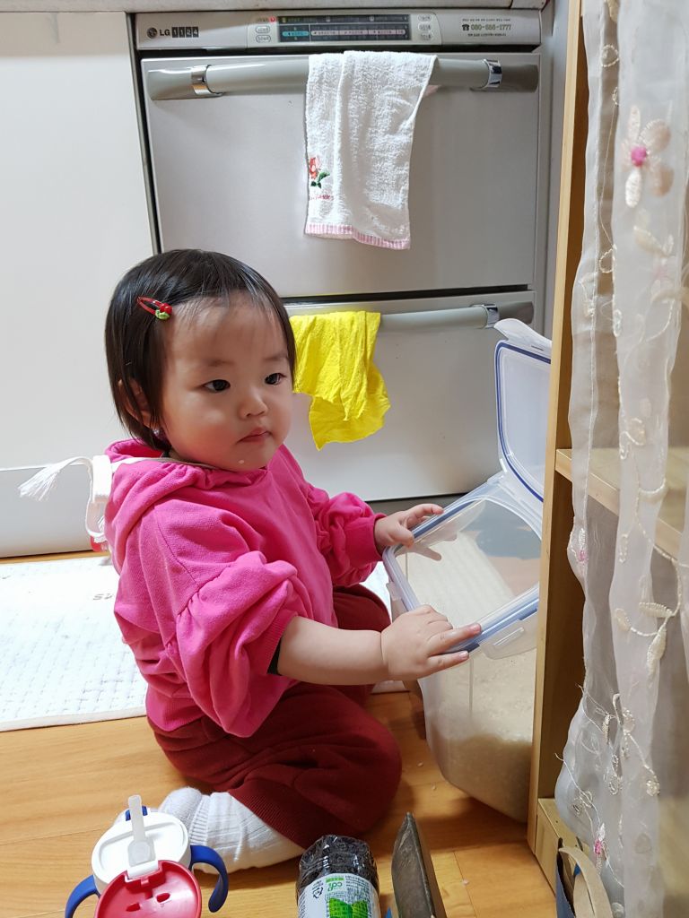 쌀통 뒤져서 생쌀 먹는 랑구~