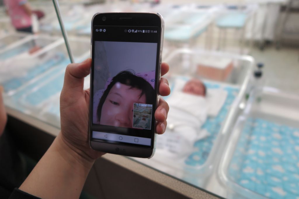 시현이 엄마는 아직 움직일 수가 없어서 영상통화로 시현이을 봅니다~