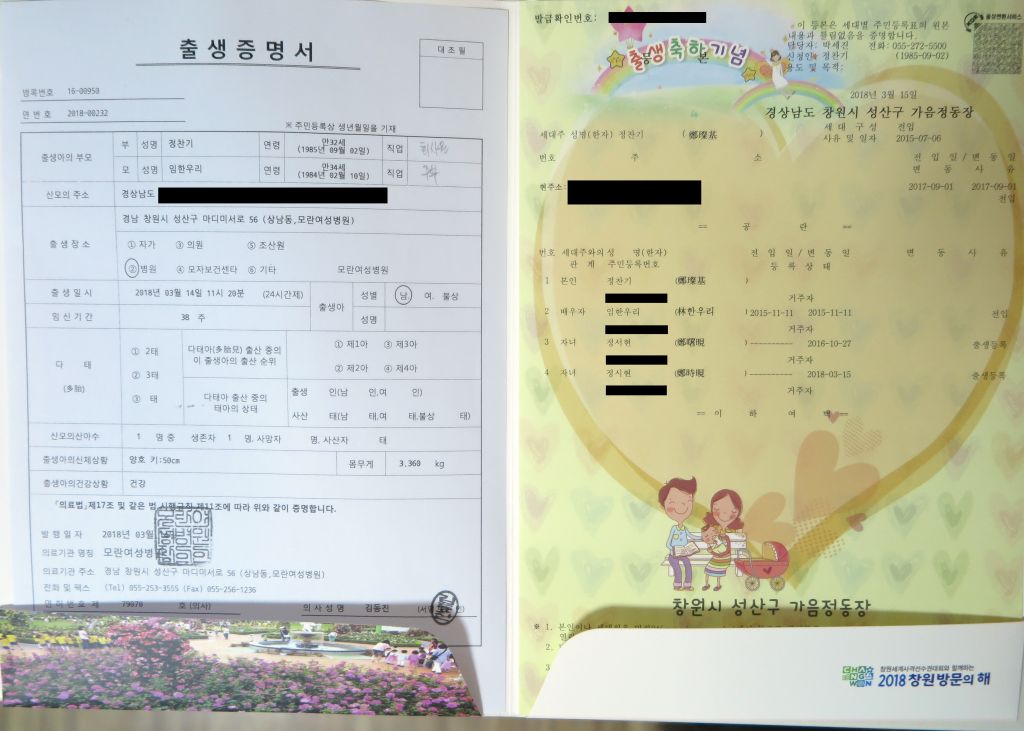 아침부터 주민센터에 가서 시현이 출생신고를 했습니다.