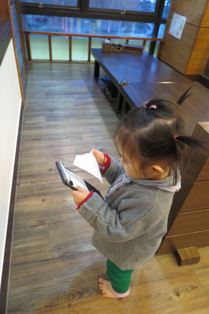 놀이방에서 신나게 놀고, 떡쌈도 너무 만족 스럽게 먹은 랑구가 식사비를 결제하려 영수증을 들었지만 ㅋㅋㅋ