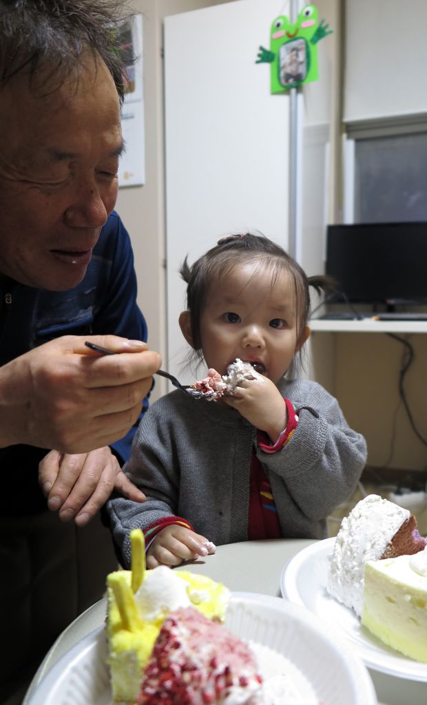 할아버지가 손녀딸 케익 먹이는 모습이 너무 느낌 좋게 사진 찍혔네요~ㅎㅎ