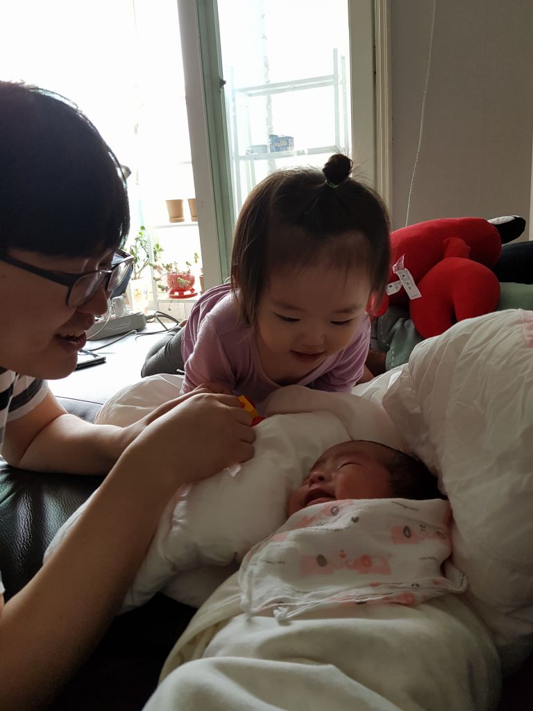 처음 보는 아기가 신기하기만 한 서현이~(づ ̄ ³ ̄)づ