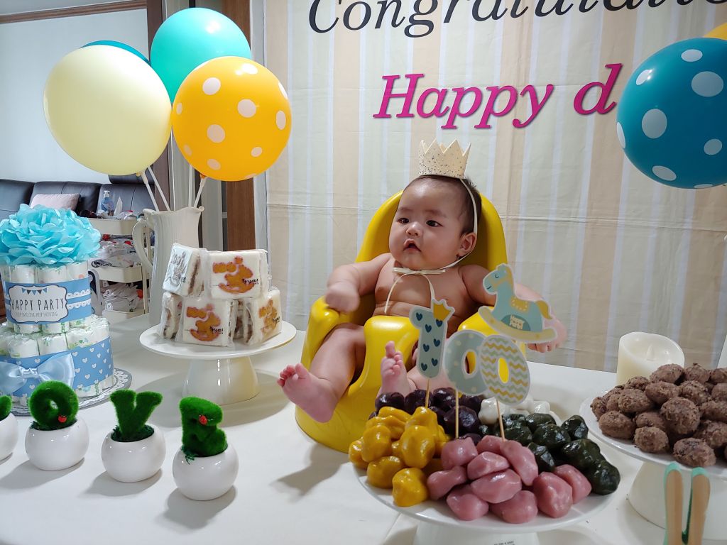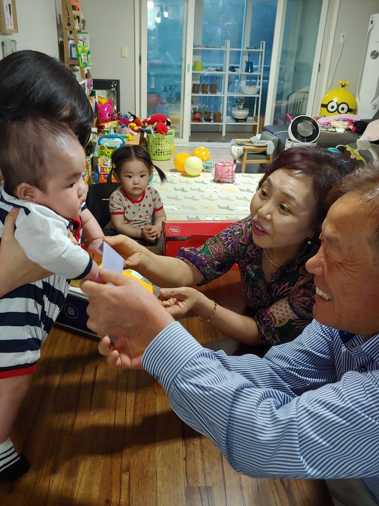 맛있는 저녁을 먹고 집에 와서 100일 축하 및 외할아버지, 친할머니의 생신 축하 이벤트를 진행했어요.