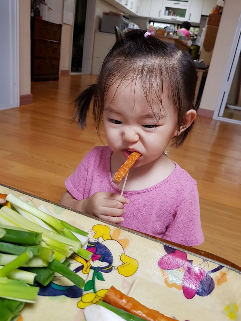 엄마랑 외할머니랑 같이 산적 꼬지도 만들었는데,