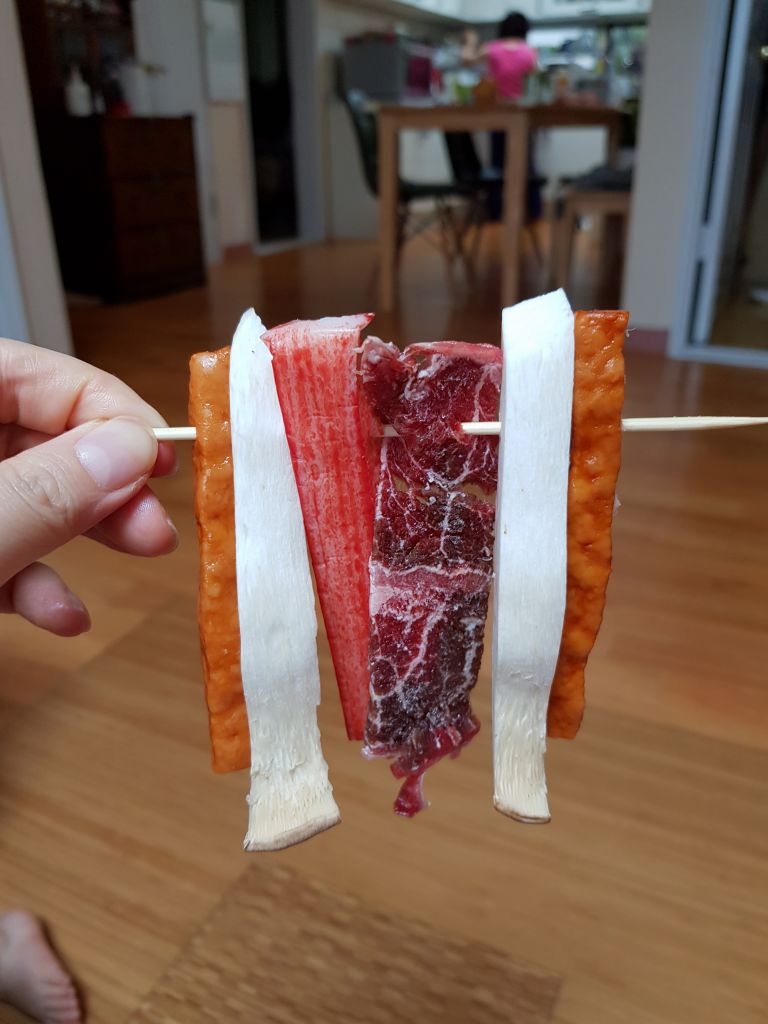 꼬지에 꼽아놓은 산적 사진 서현아빠를 위한 no파 산적이네요 ㅎㅎ