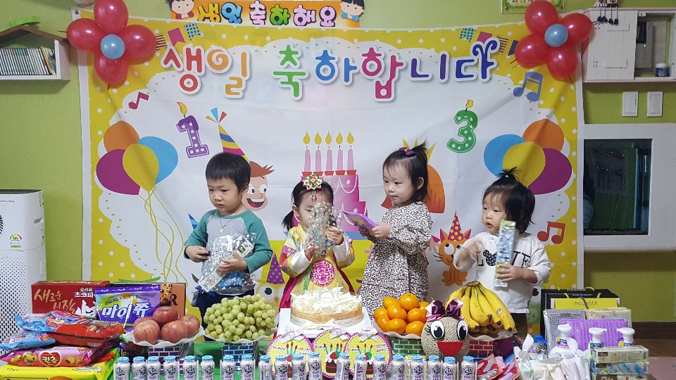 어린이 집에서도 생일자 축하를 합니다.