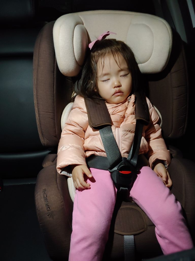 신나게 놀고 집으로 오는 짧은 시간에 차안에서 잠들어 버렸네요 。◕‿◕。