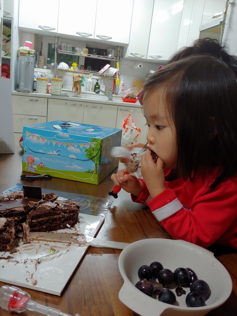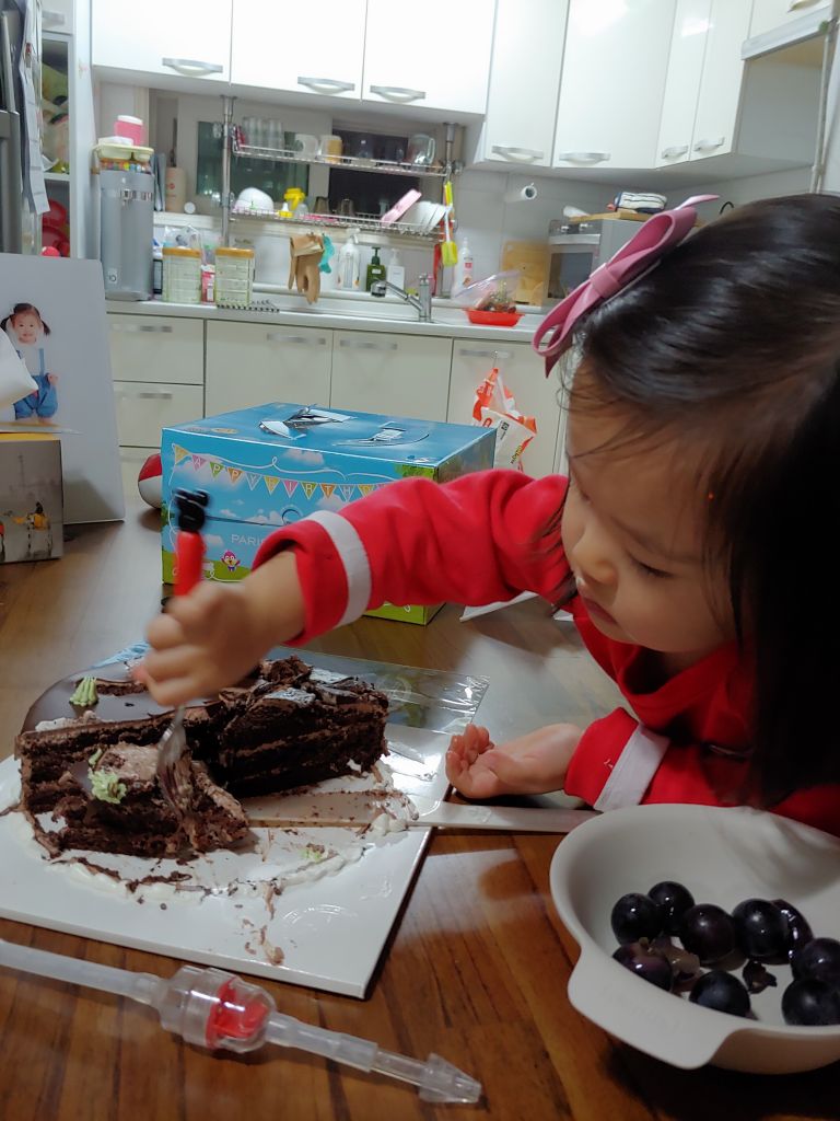 선물 다 개봉한 뒤, 서현이는 케이크 먹방중~