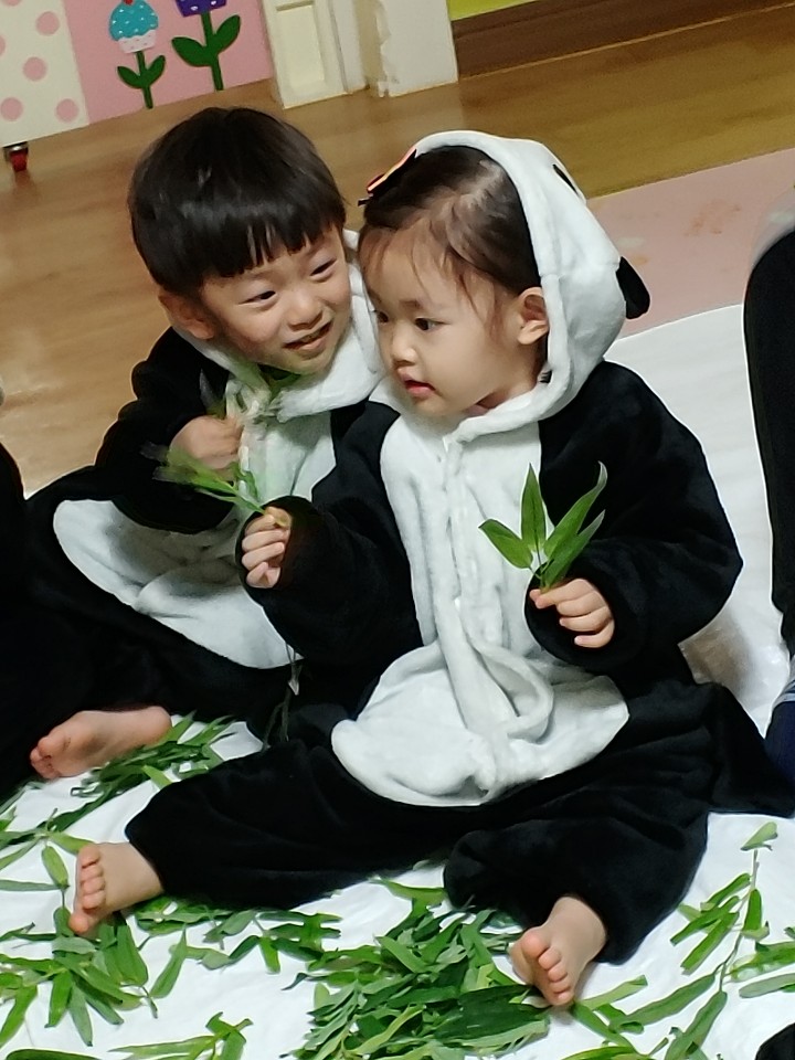 서현이 판다가 되어 대나무 잎 뜯어 먹고 있는데, 옆에 판다 눈에 거슬린다 ಠ╭╮ಠ ㅋㅋㅋ