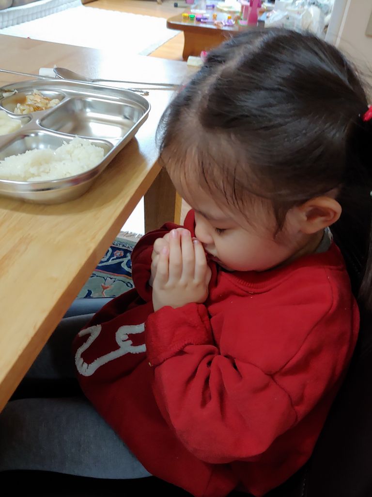 밥먹기 전에 손을 예쁘게 모으고 기도하는 서현~🙏