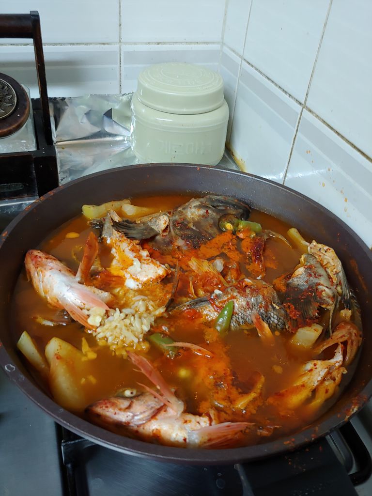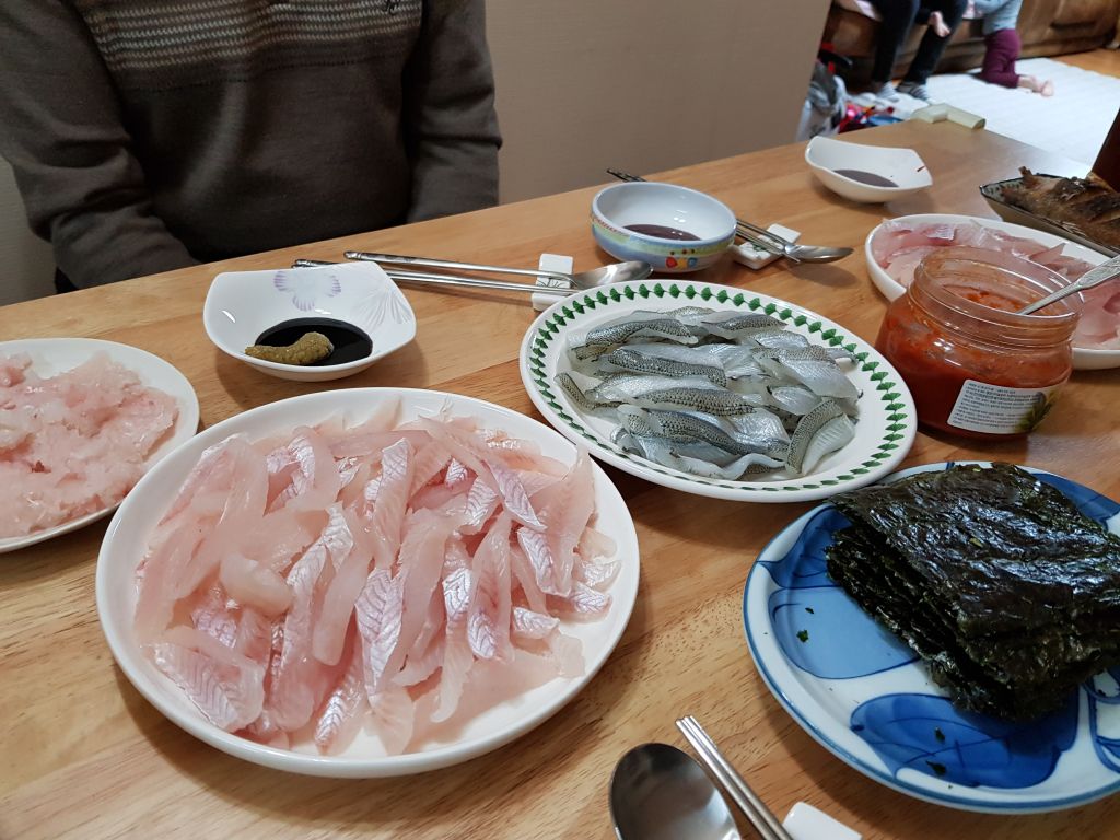 아버님께서 잡아오신 열기와 학꽁치를 회쳐서 배불리 먹고 우럭 매운탕까지~ 캬~~