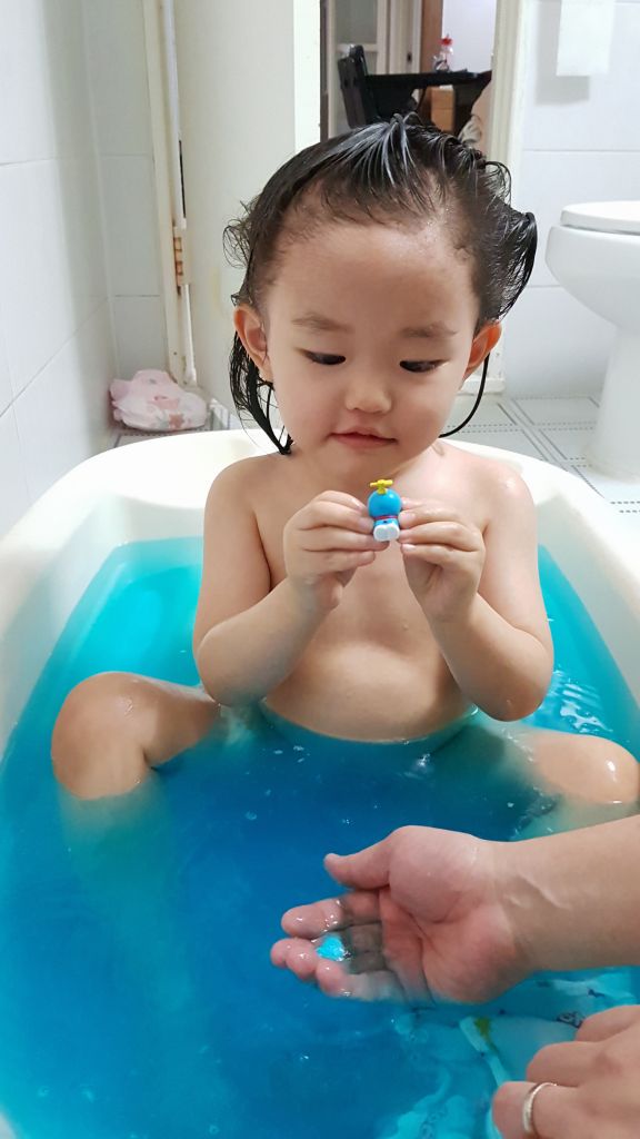 서현이가 샀던 물건은 바로 도라에몽 피규어가 들어있는 입욕제였네요ಠ‿↼