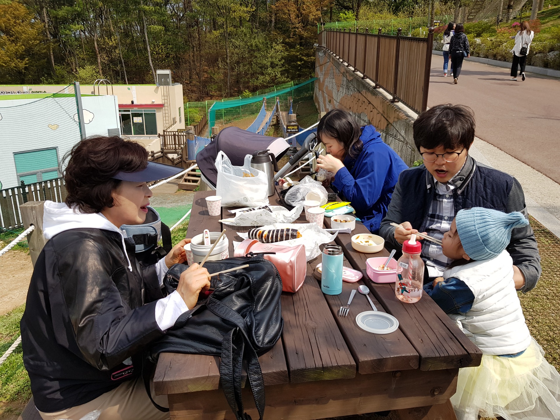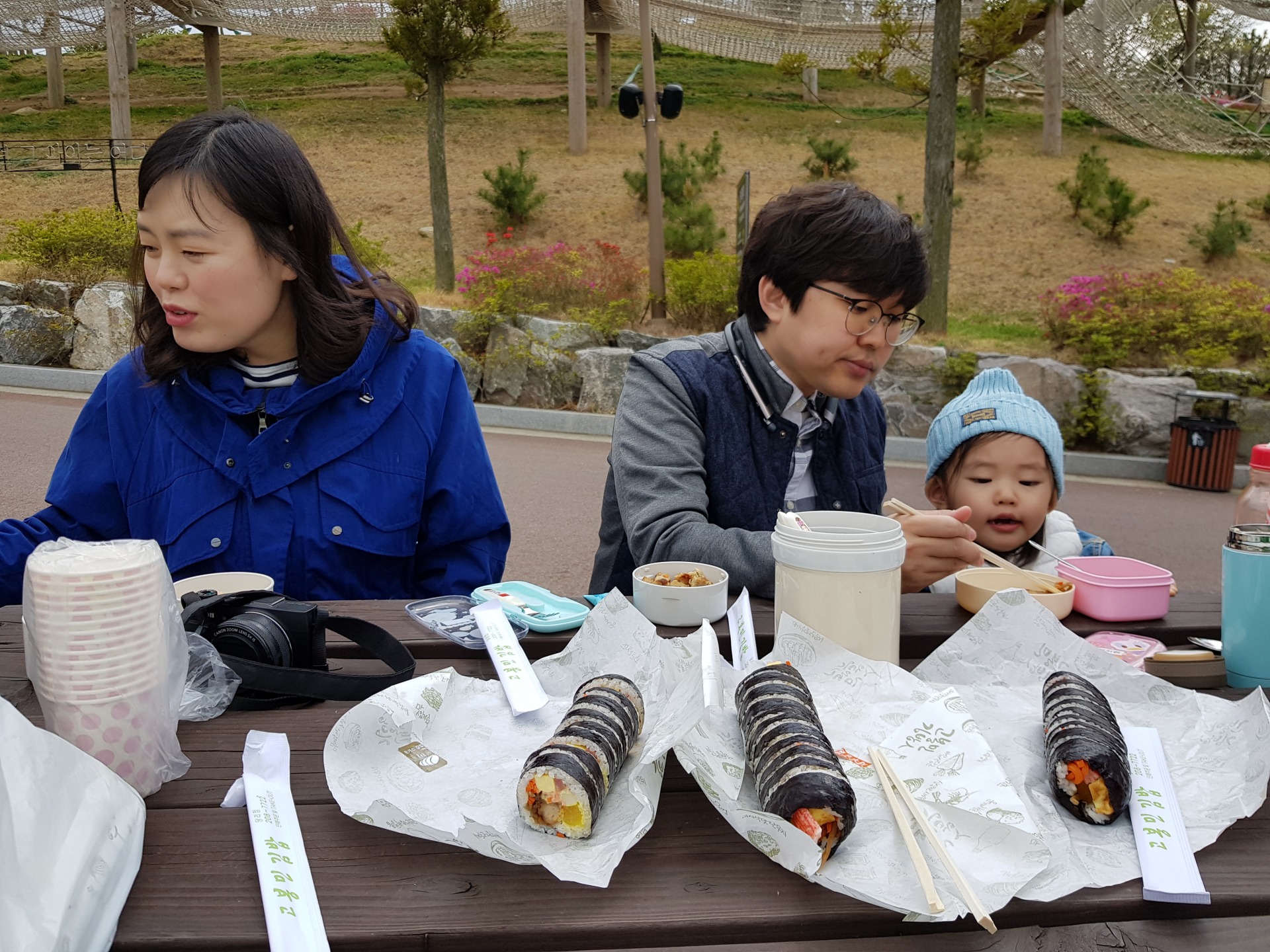 소풍에는 빠질수 없는 김밥!! 장모님께서 사오신 김밥으로 배를 채우고~