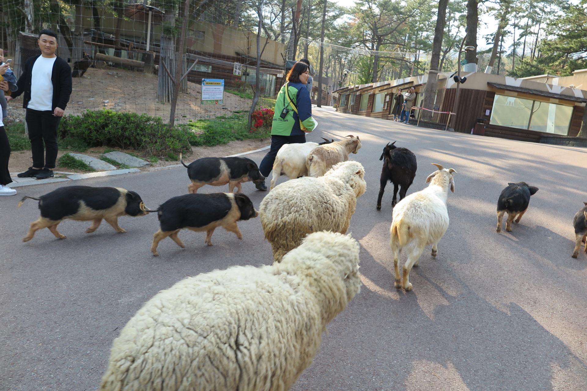 동물원 안에 어린 동물들이 다니는 사파리 유치원이 있는데, 오후 2시, 4시에 퍼레이드를 한답니다.