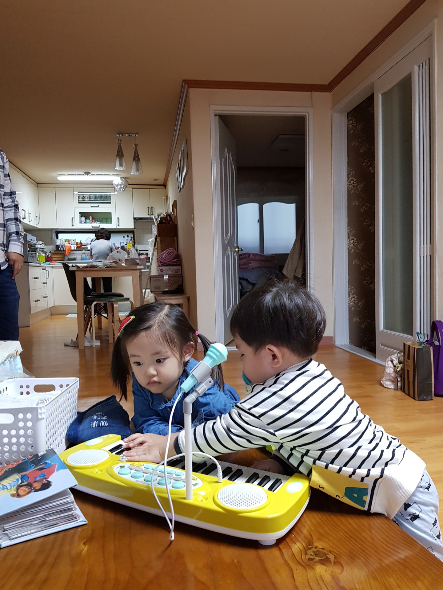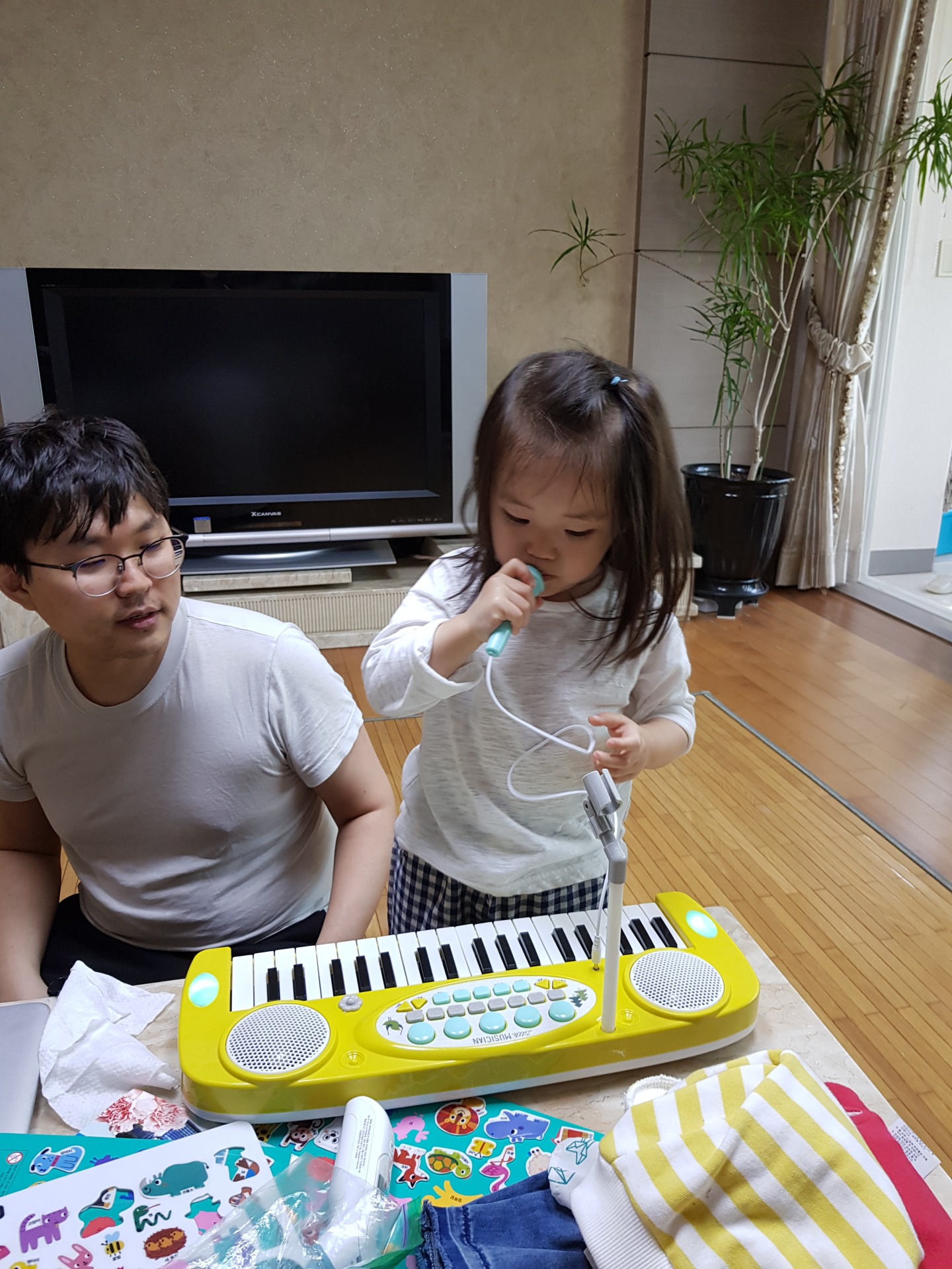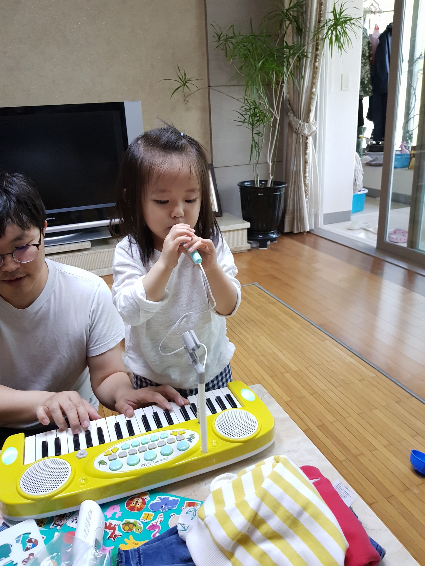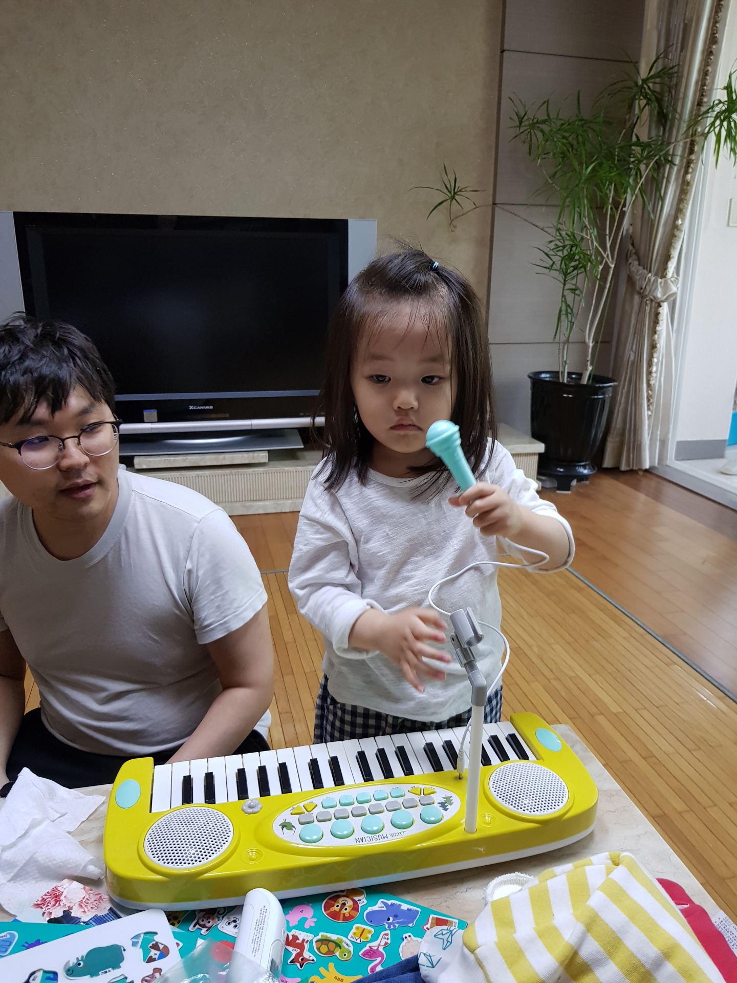 아빠 반주에 맞춰서 노래 부르기 시작~(͡ ͡° ͜ つ ͡͡°)