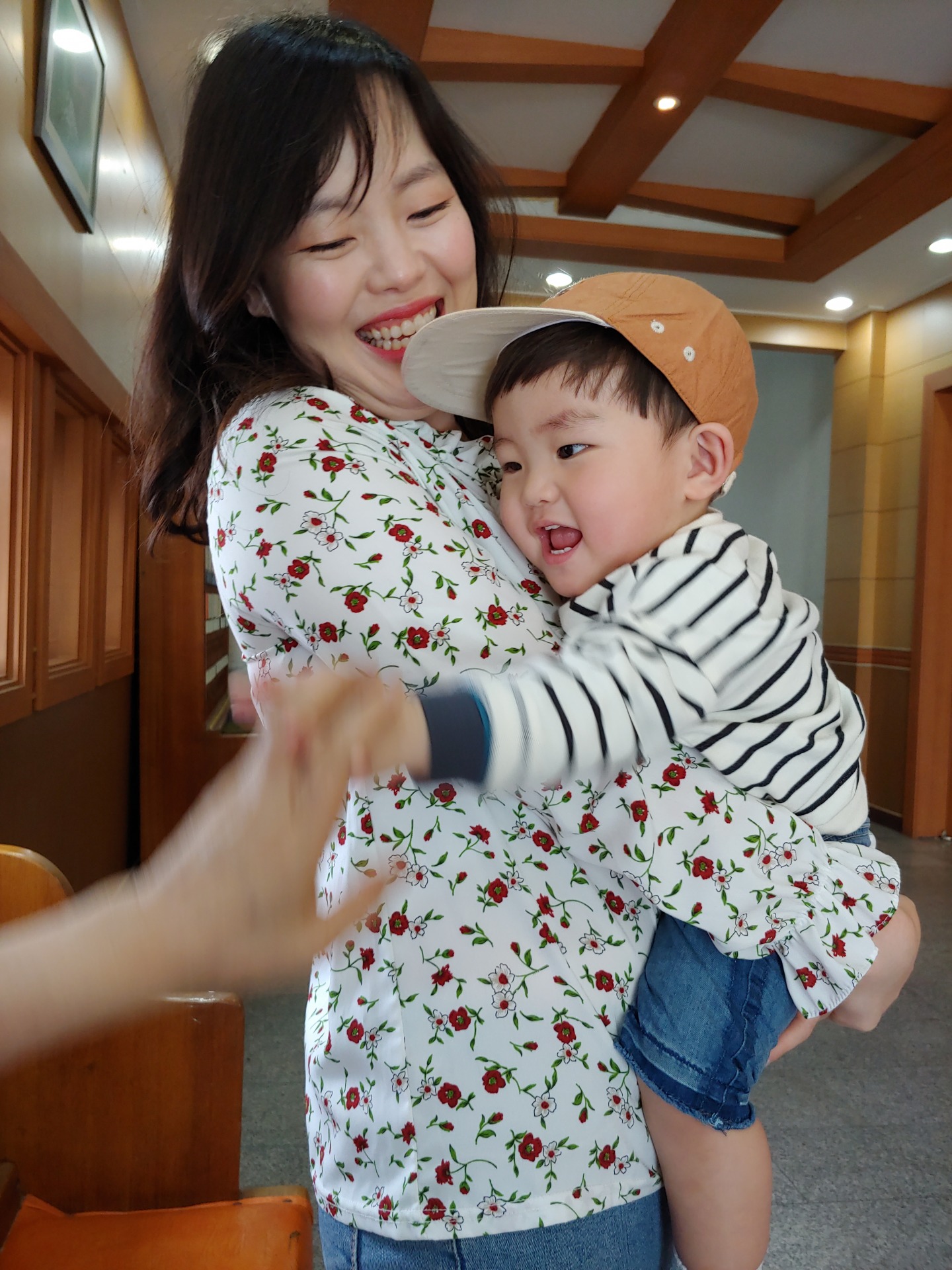 교회 식당 의자에 앉아서 멍때리고 있어도 귀여움(~˘▾˘)~