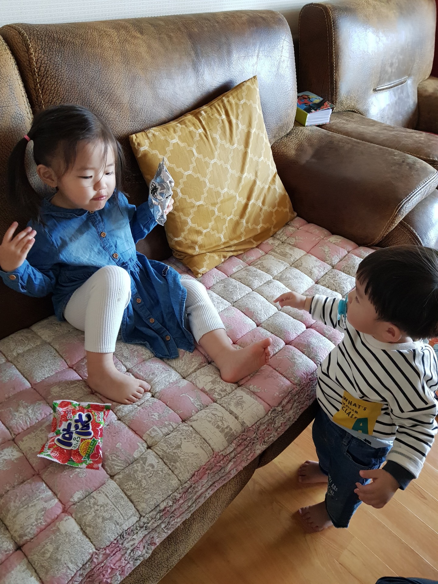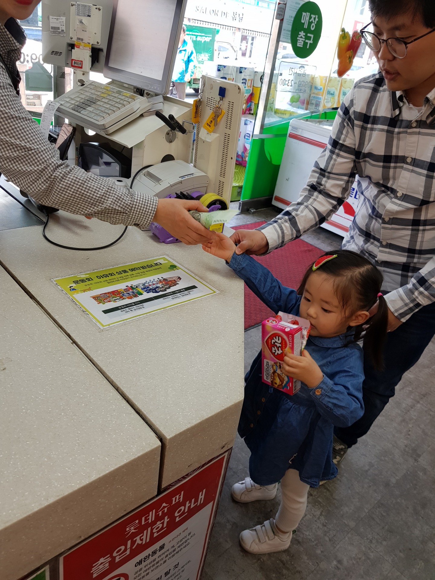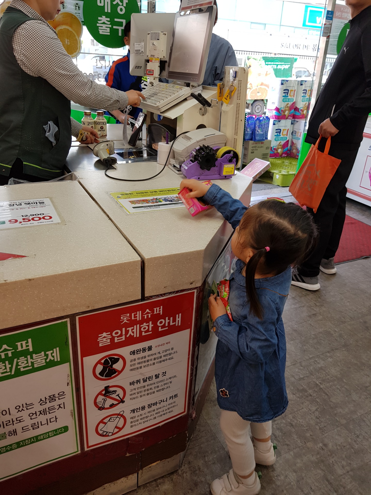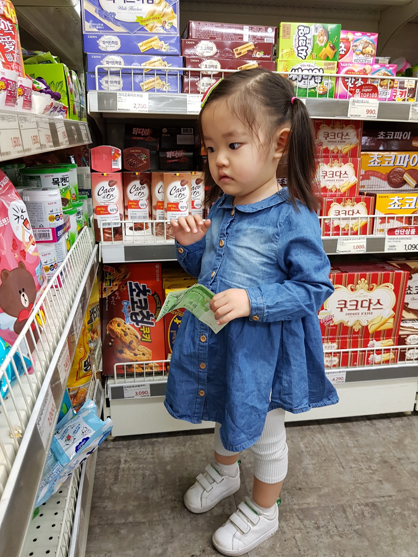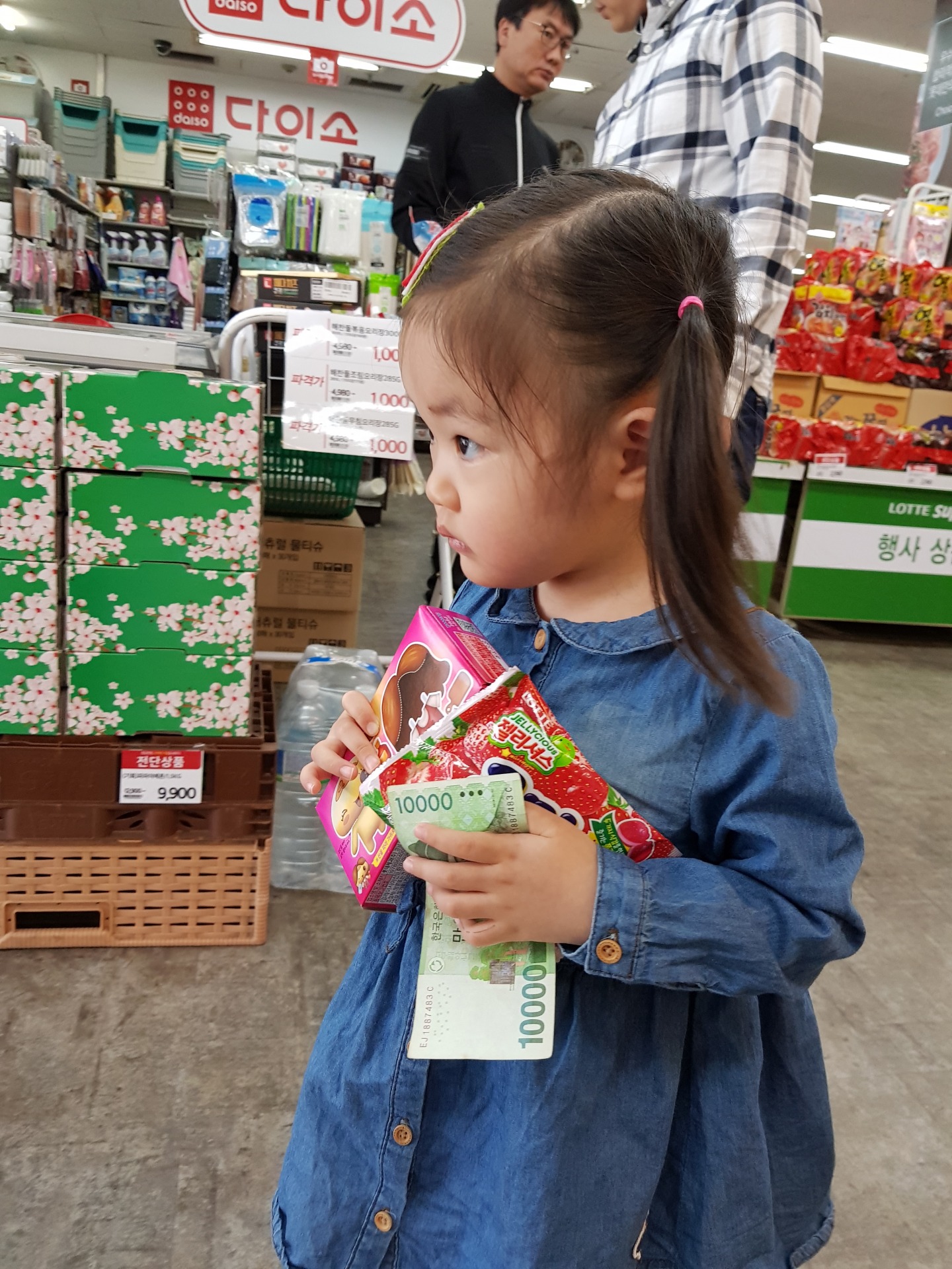 서현이가 직접 돈 내고 까까를 샀습니다.