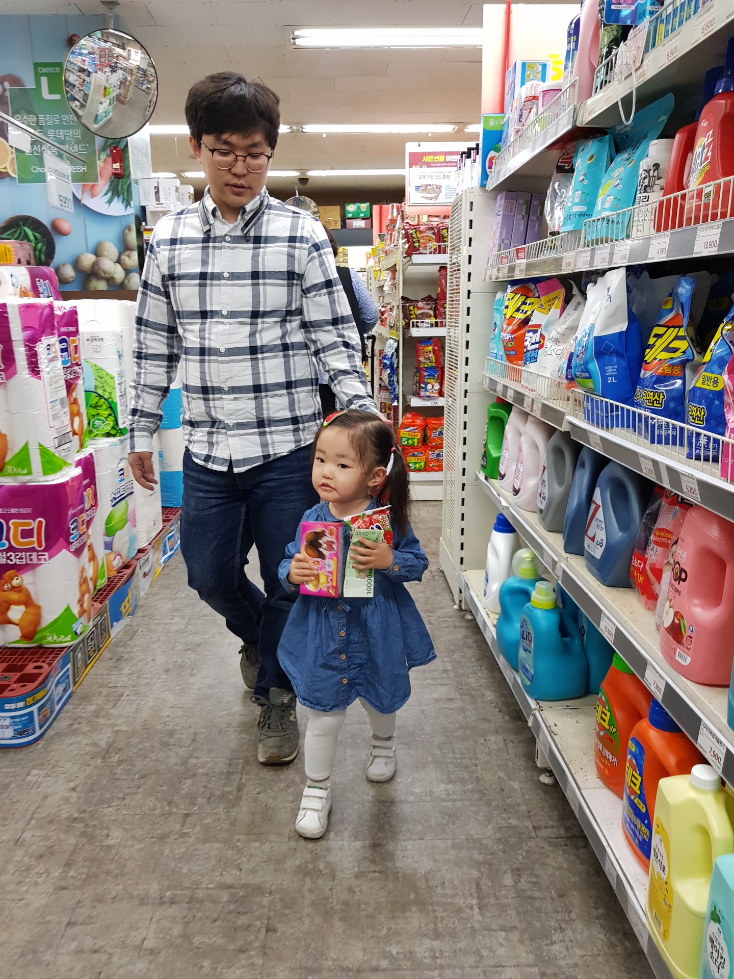 교회에서 만난 집사님께 받은 돈으로 마트에 까까 사러 갔습니다.