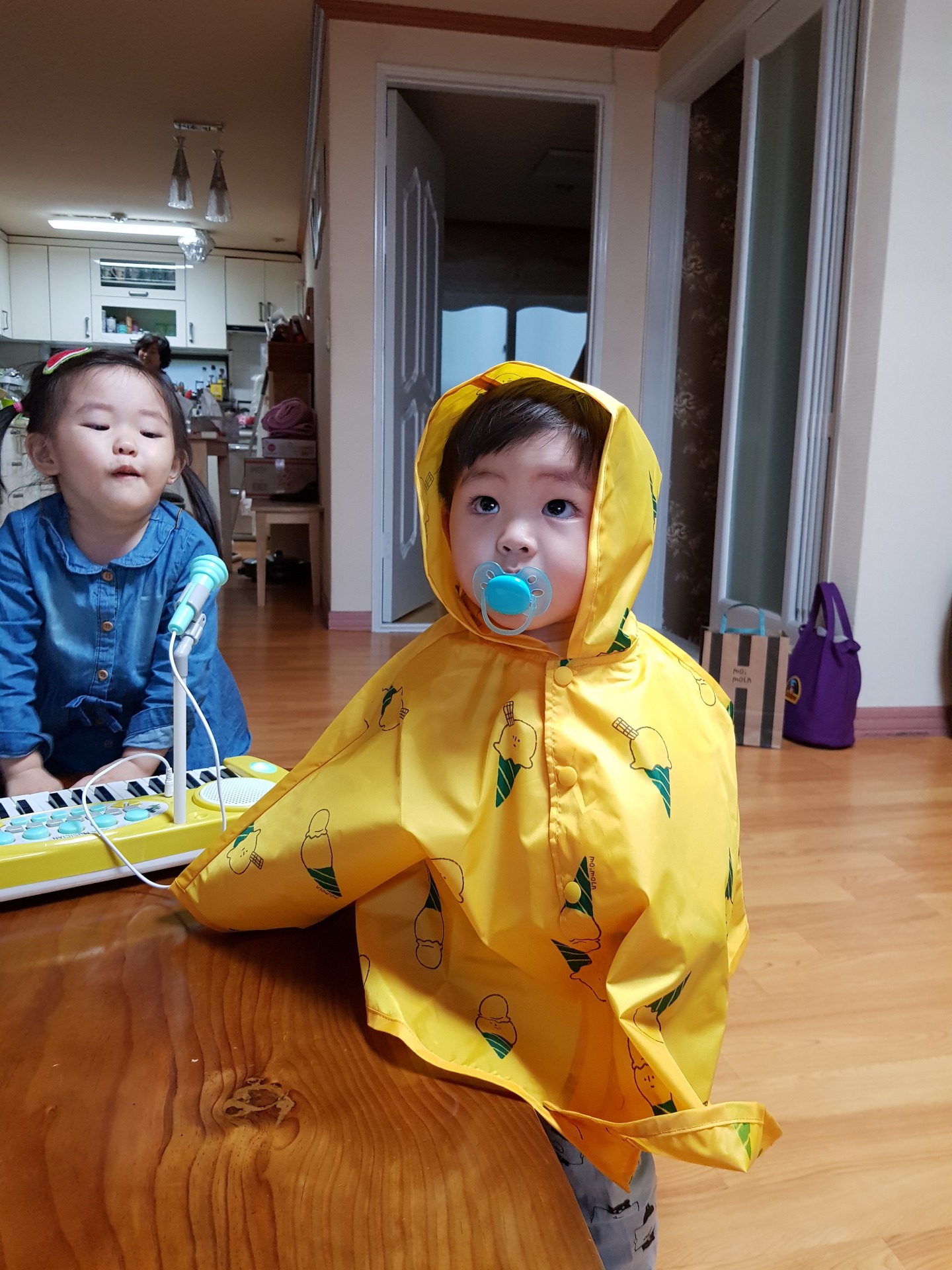시현이 첫 비옷을 친할머니께서 사주셨어요.