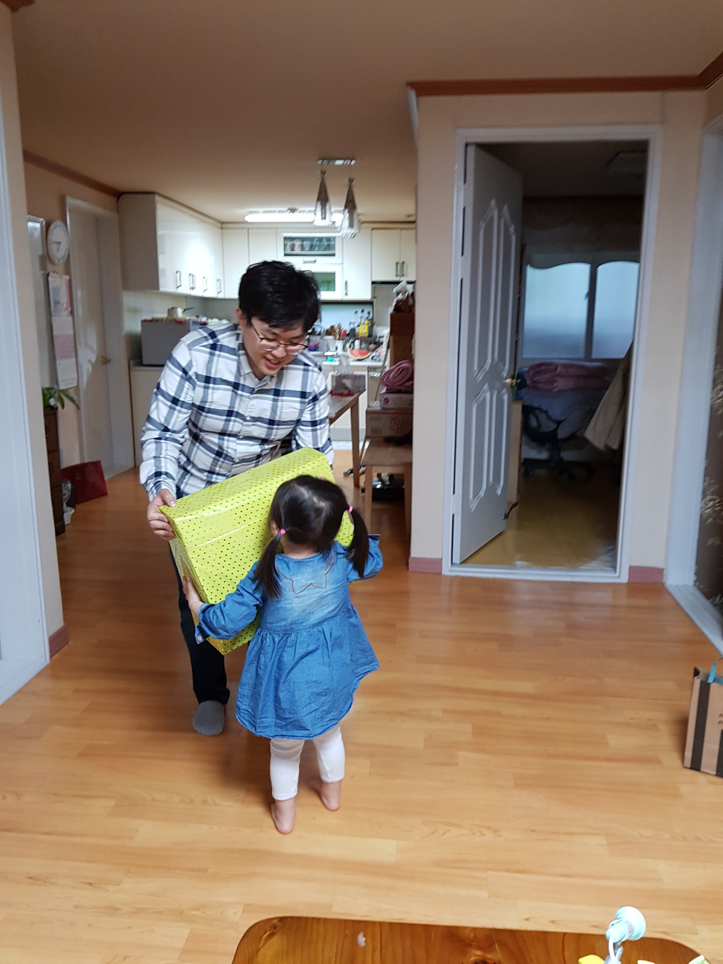 새로 받은 장난감에 빠져서 들어 갑니다~