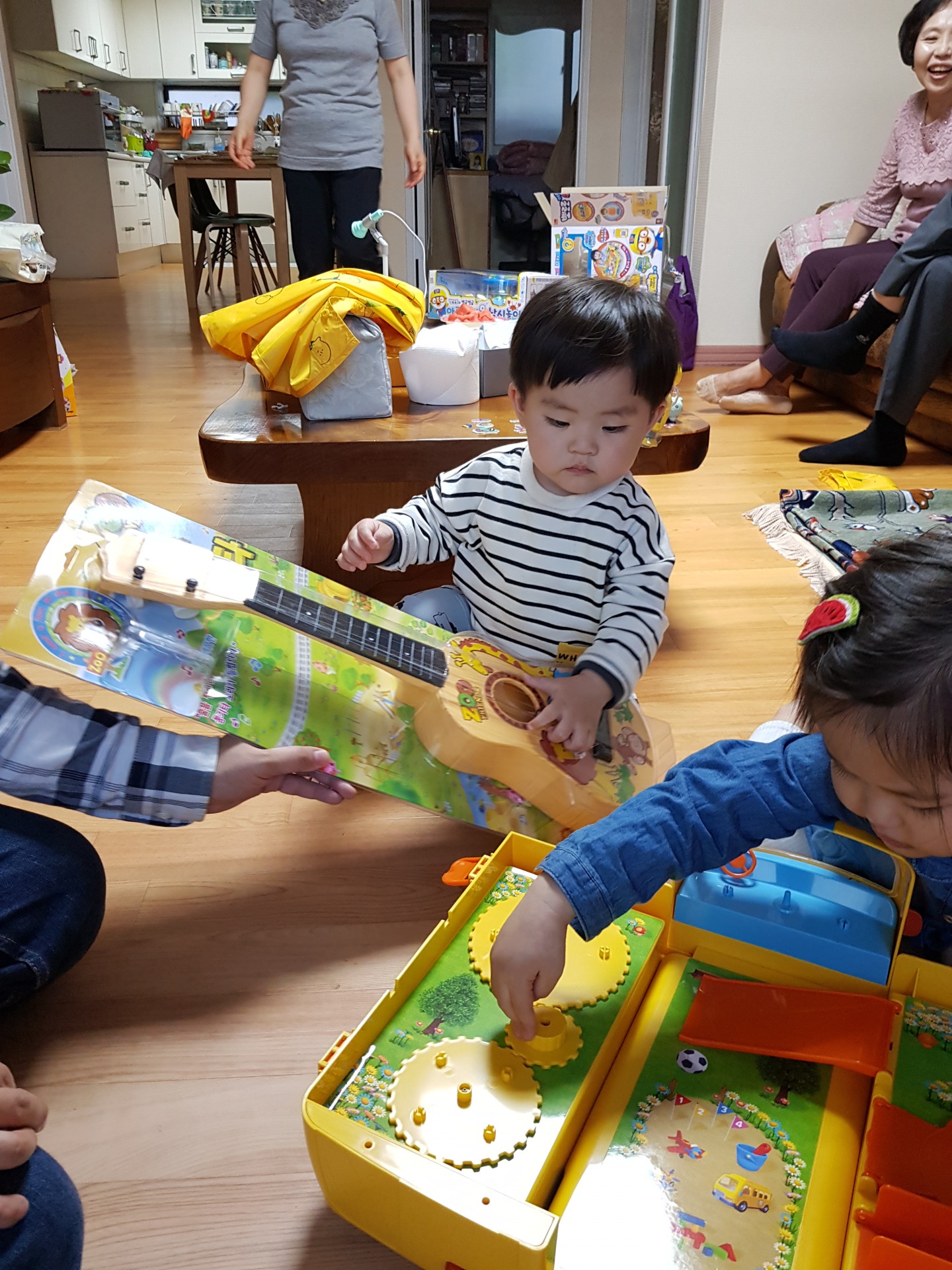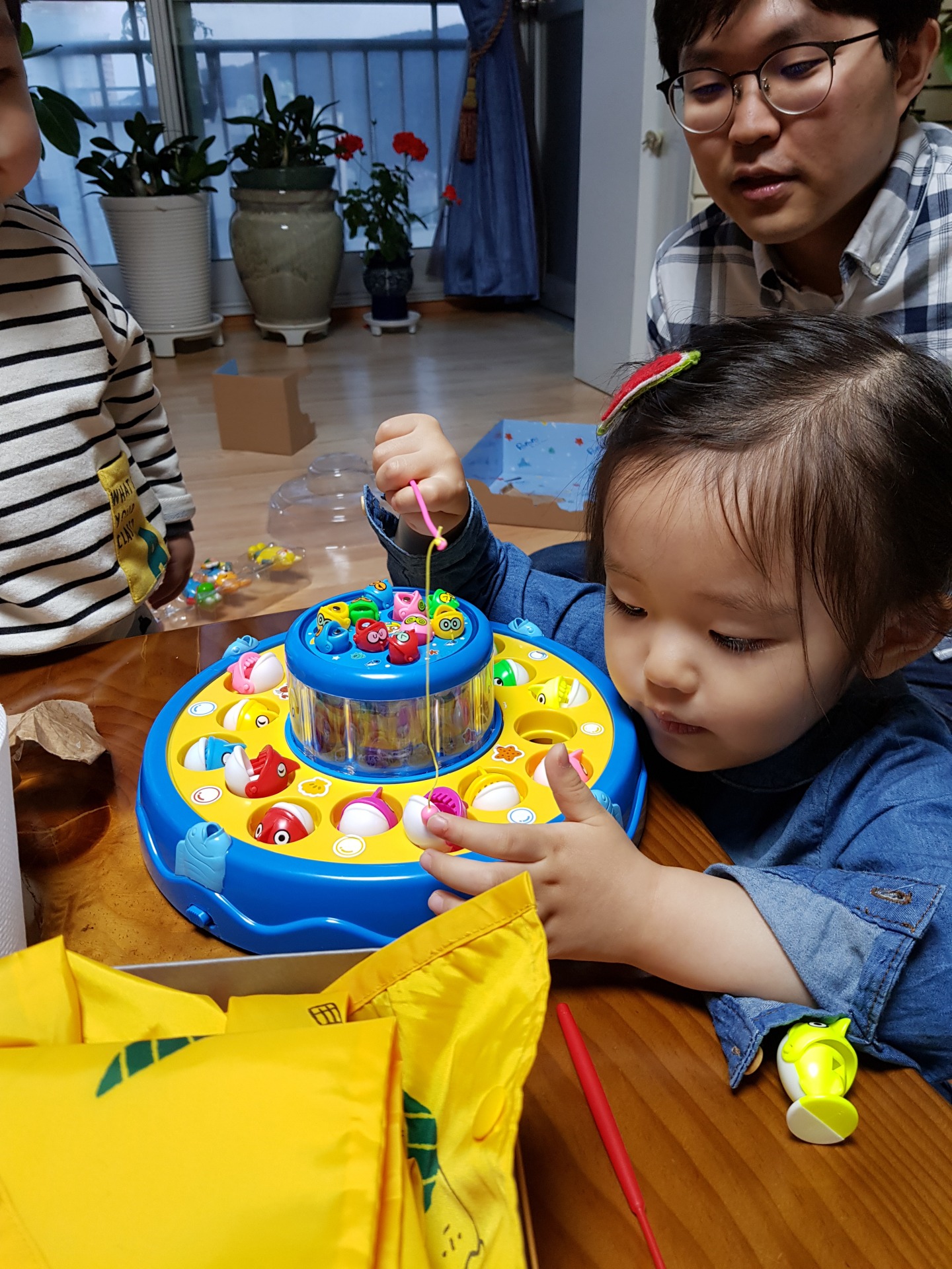 마지막으로 엄마 아빠가 준비한 낚시 놀이와 기타까지 올해도 장난감 선물이 풍년입니다(ง’̀-‘́)ง