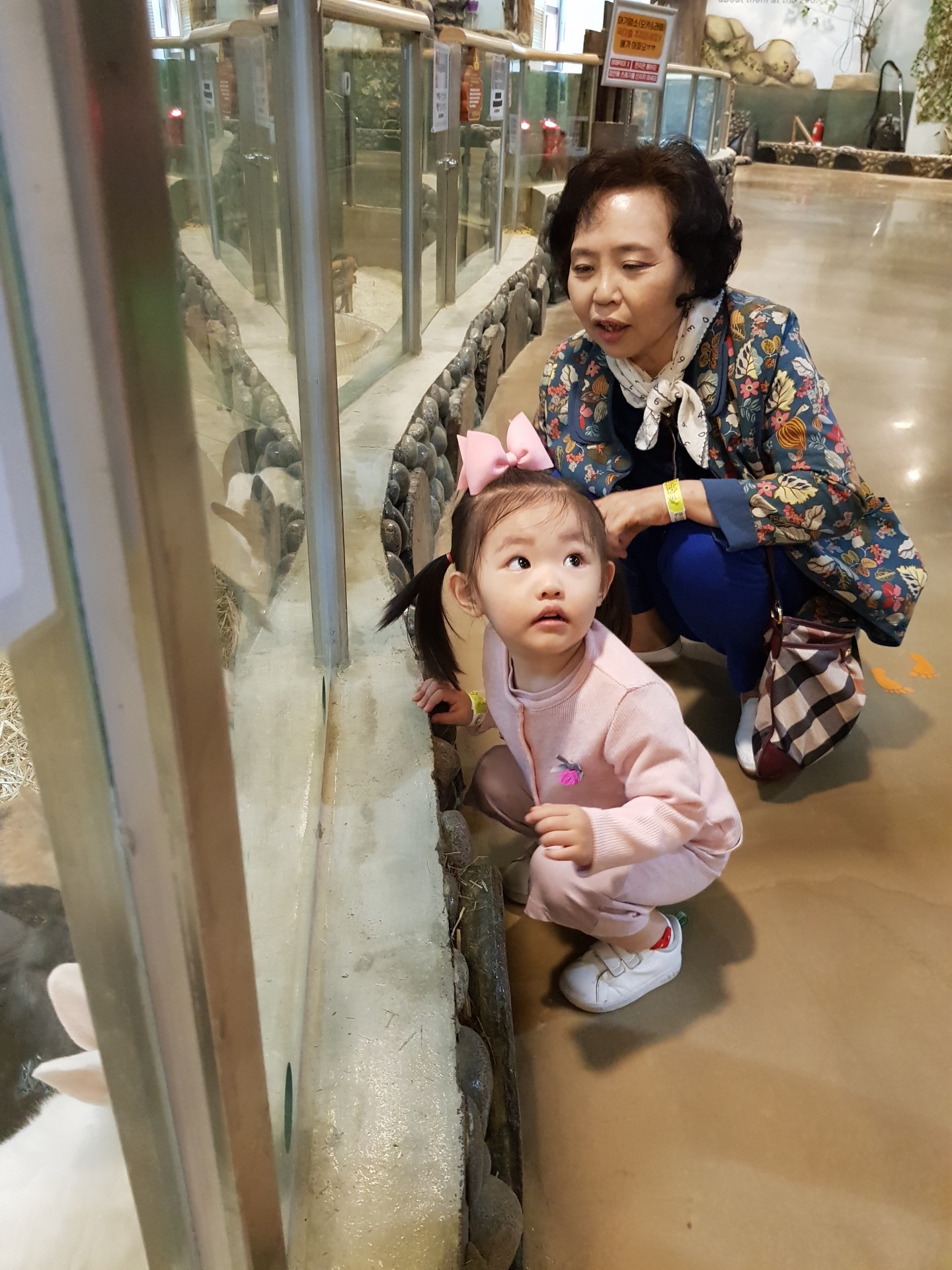 양가 할머니들과 함께 김해에 있는 주주힐즈라는 실내 동물원에 다녀왔습니다.