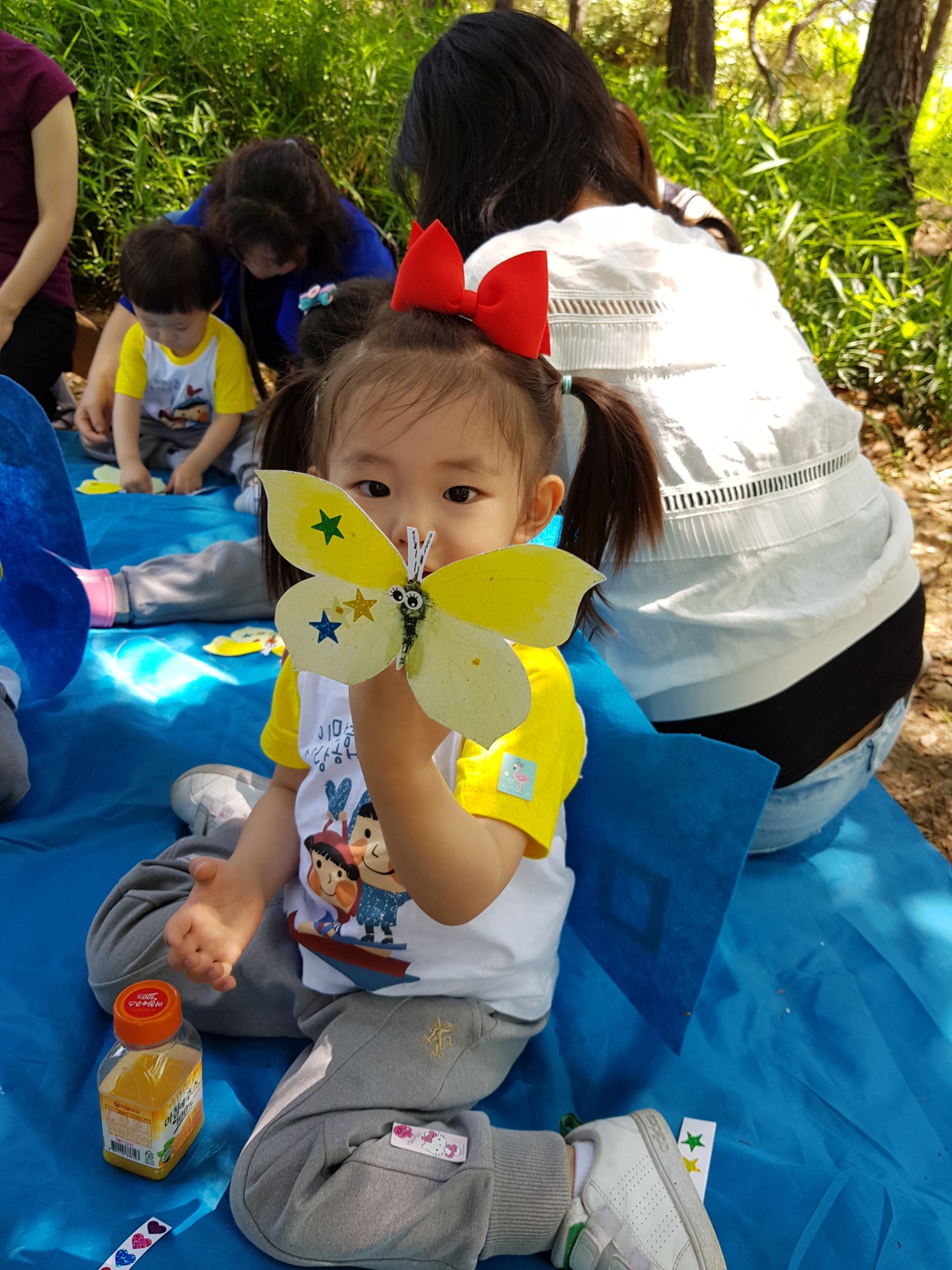 2. 이번 숲체험은 애벌레에서 나비가 되는 과정을 체험했습니다^^ 저 오렌지주스를 열심히 먹다가 주스병 입구에 코가 들어가서 코끝이 빨개지기도 했었습니다 ㅎㅎ 이런 작은 것까지 다 추억이네요^^