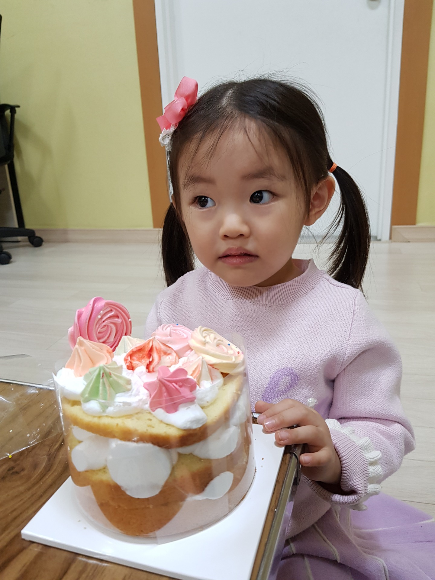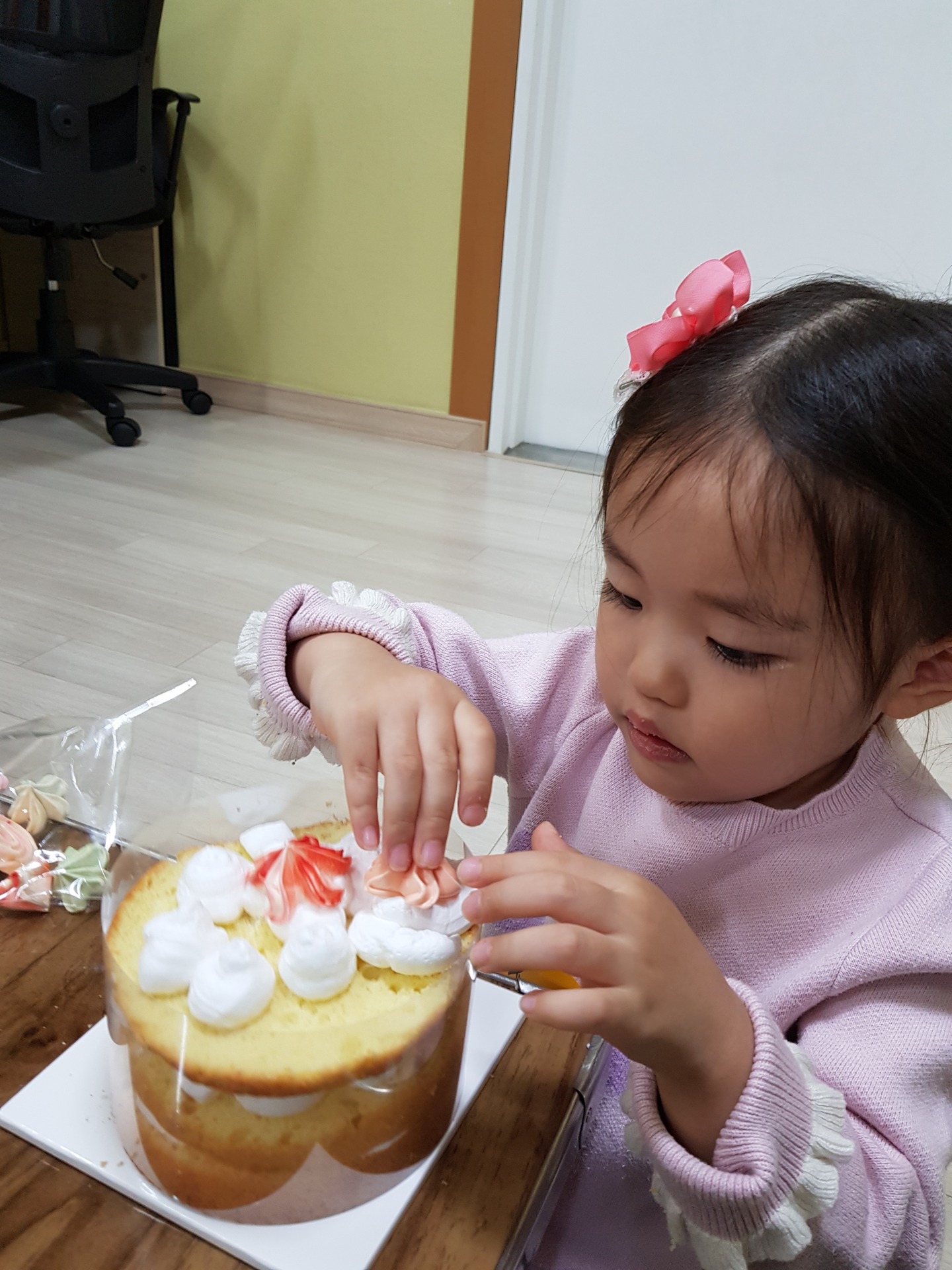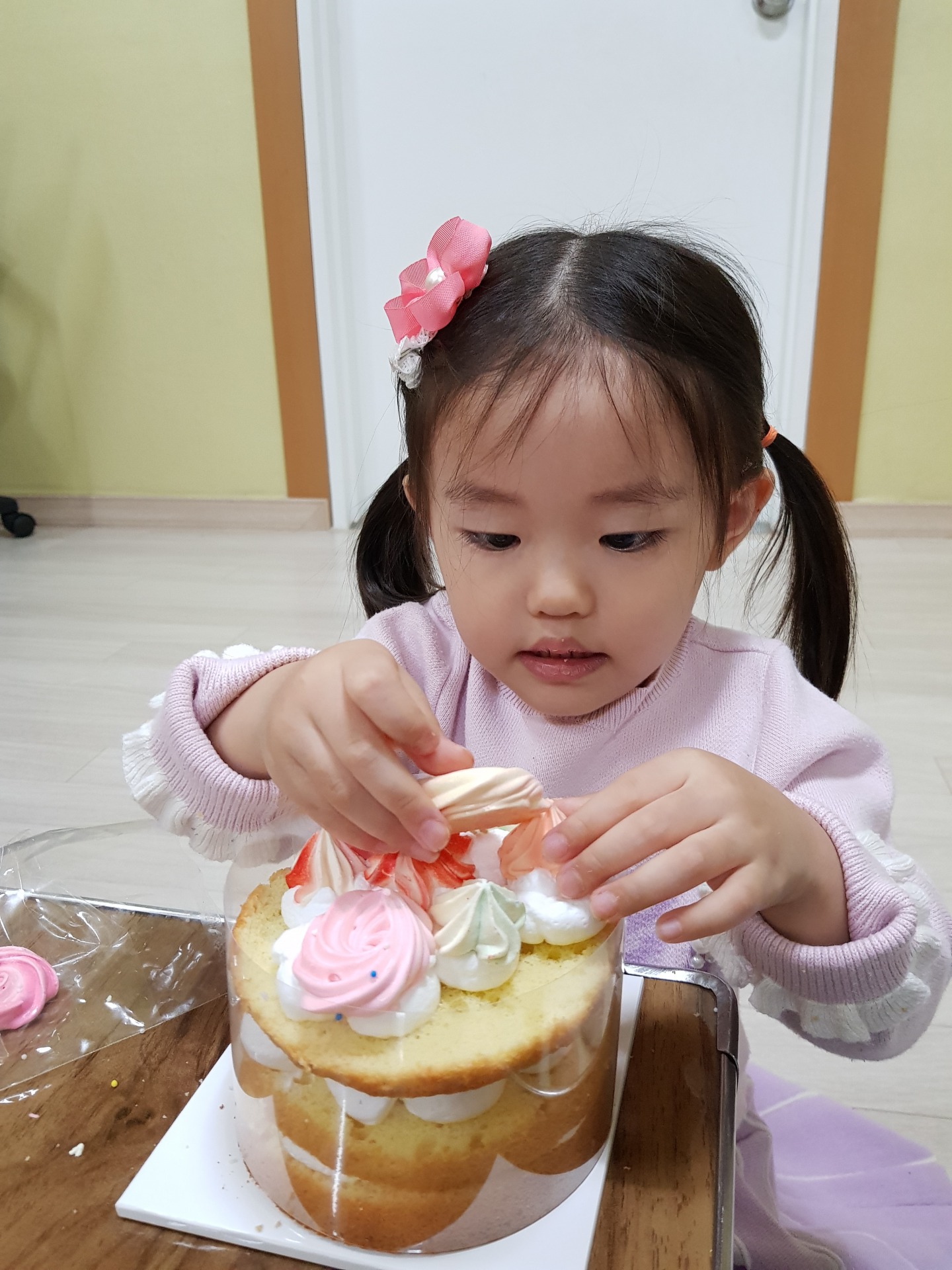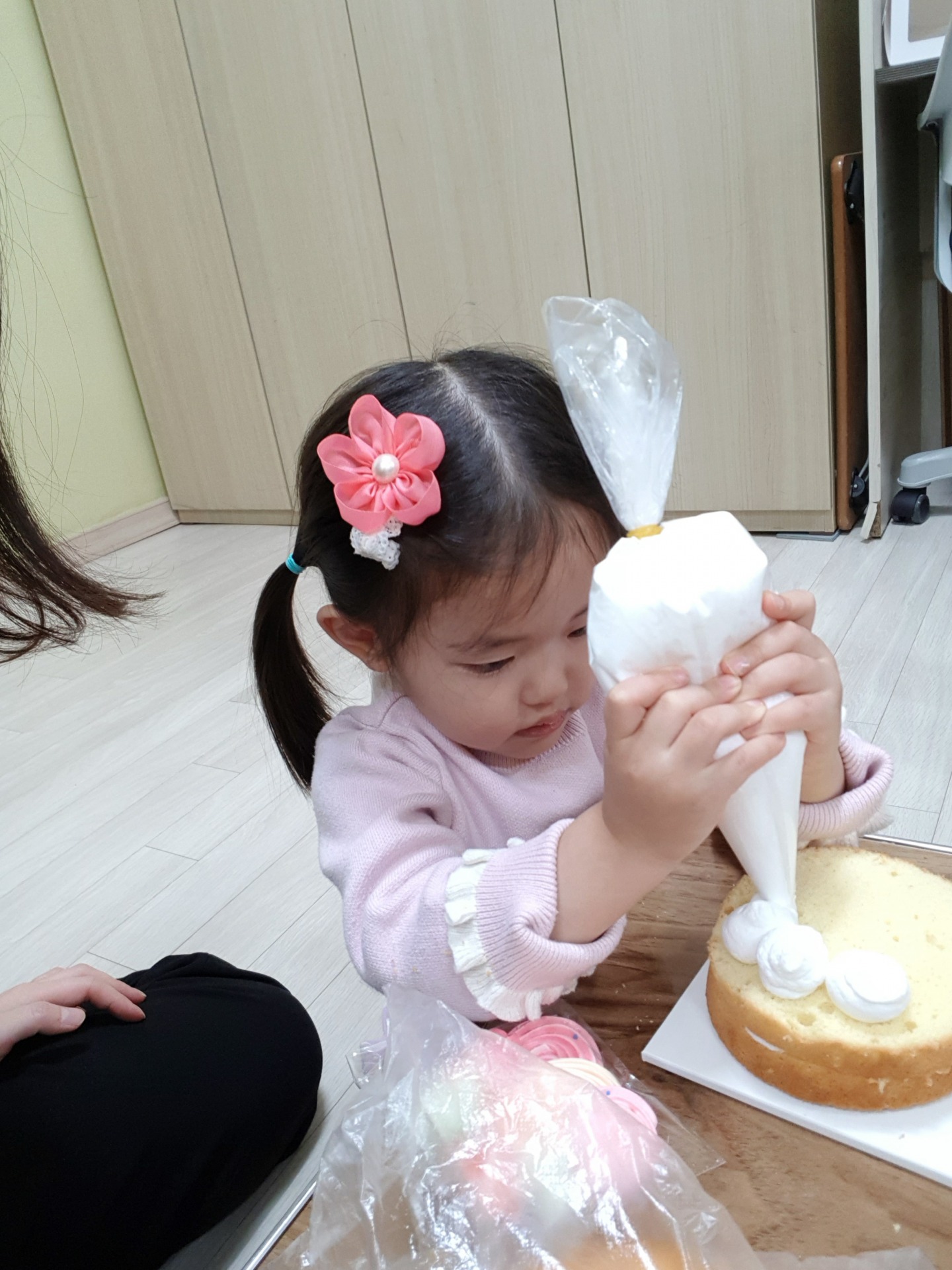 이전에 케이크 몇 번 만들어 봤다고 꽤 능숙하네요d===( ̄▽ ̄*)b