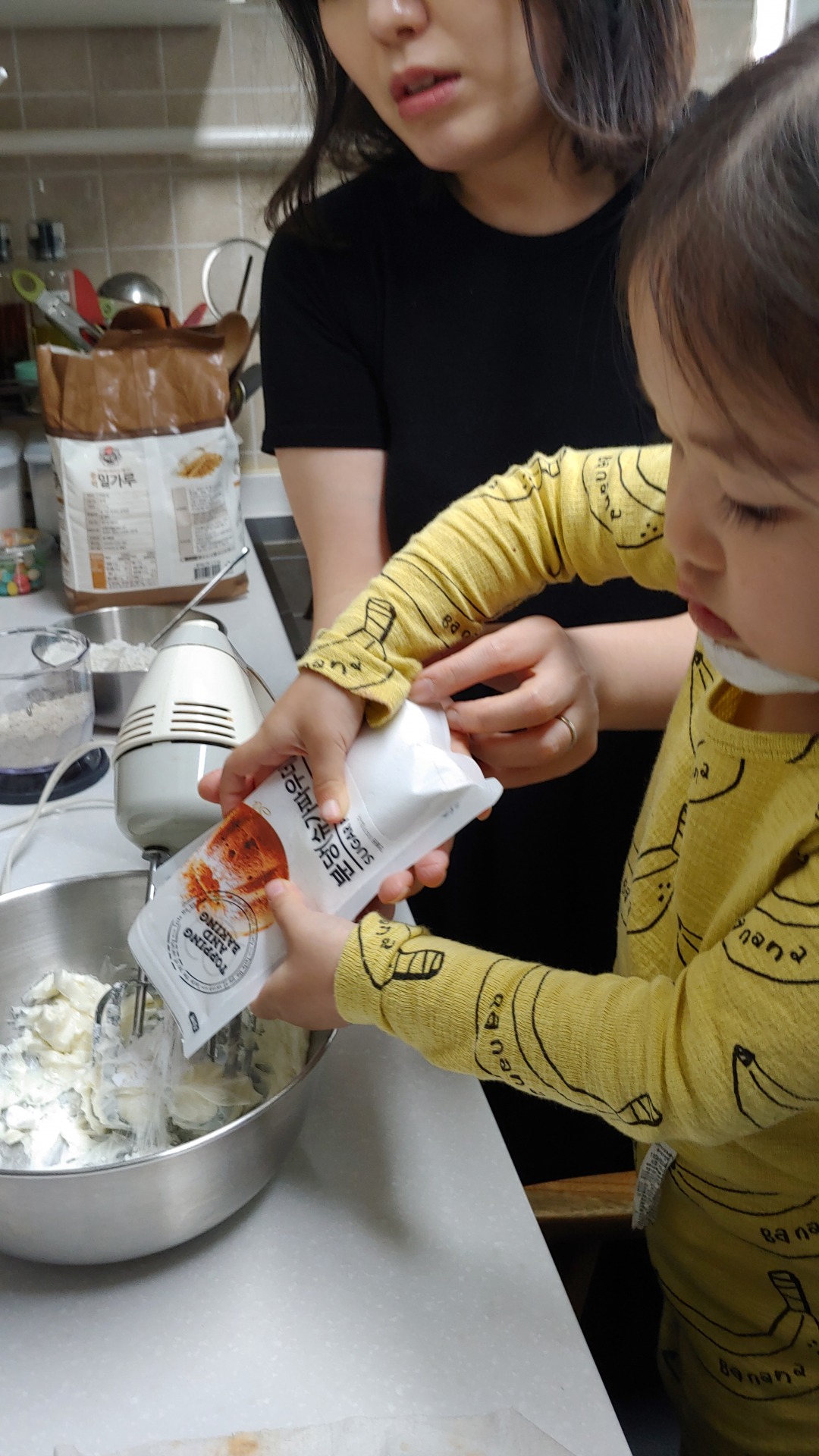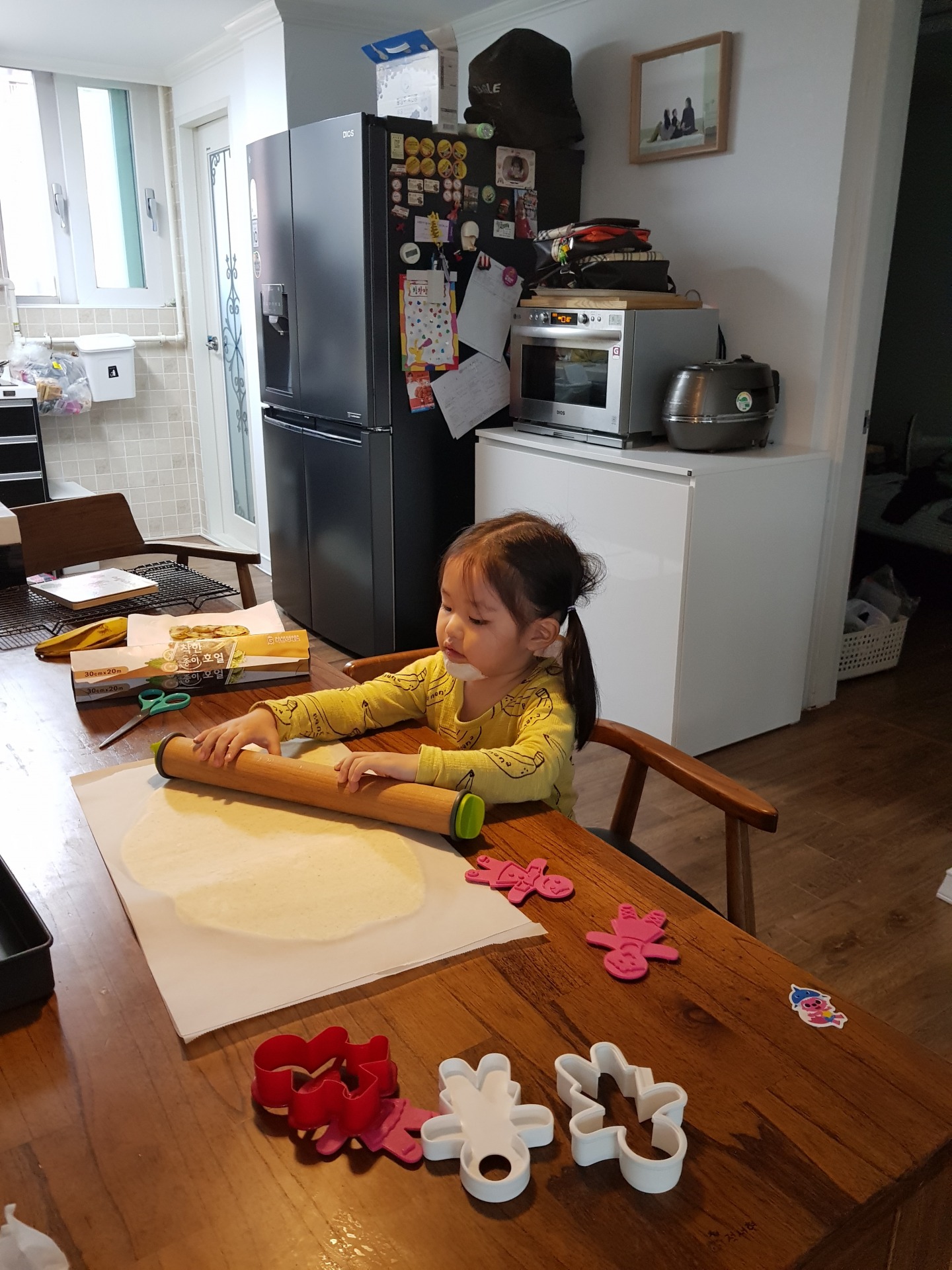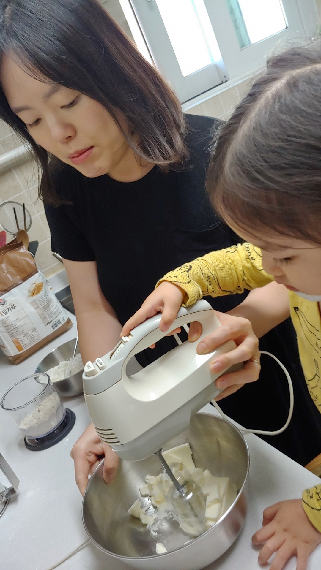 엄마의 지시에 따라 하나씩 따라하며 쿠키를 만드는 장래 희망이 요리사인 정서현…(* ̄0 ̄)ノ