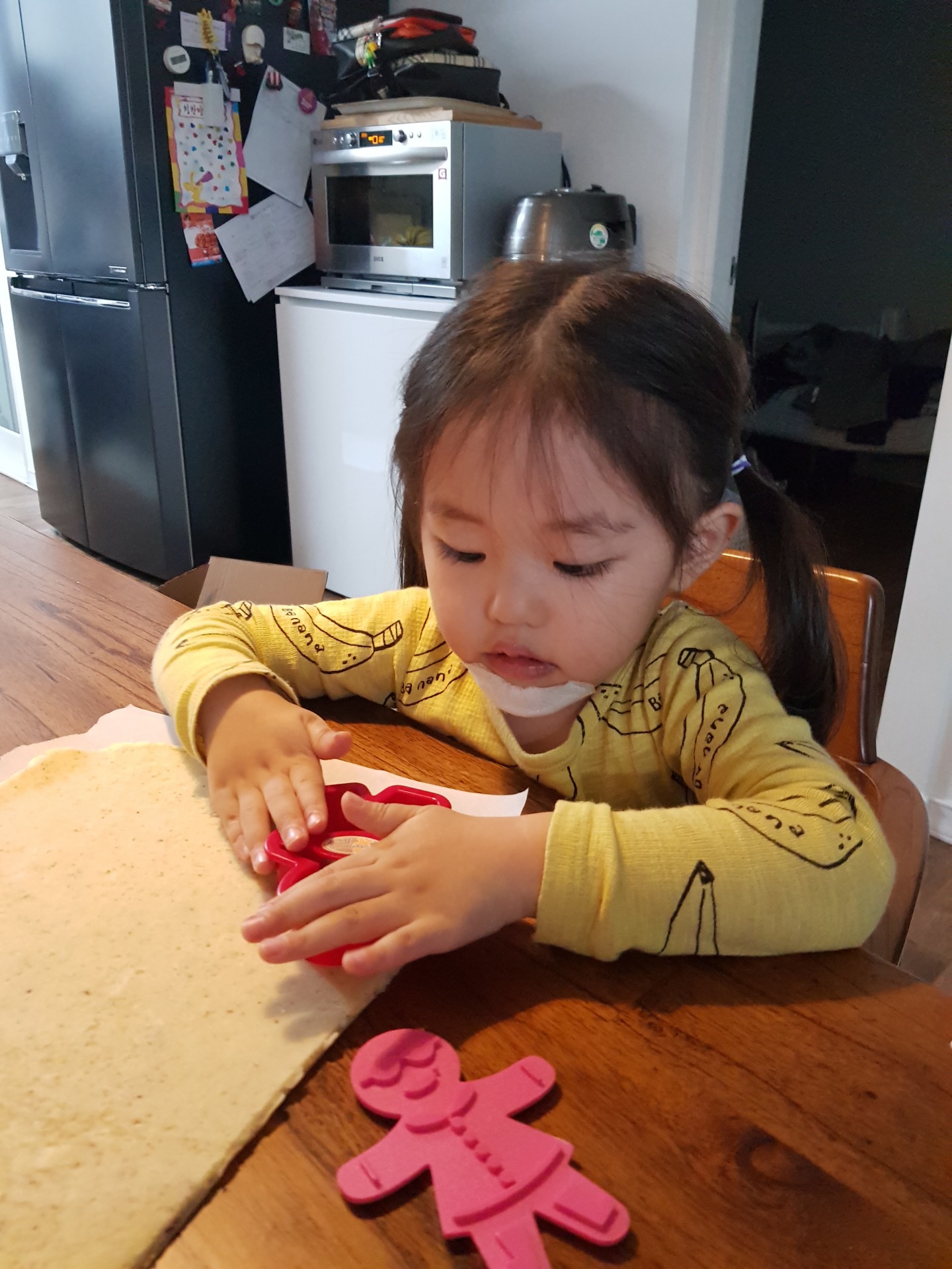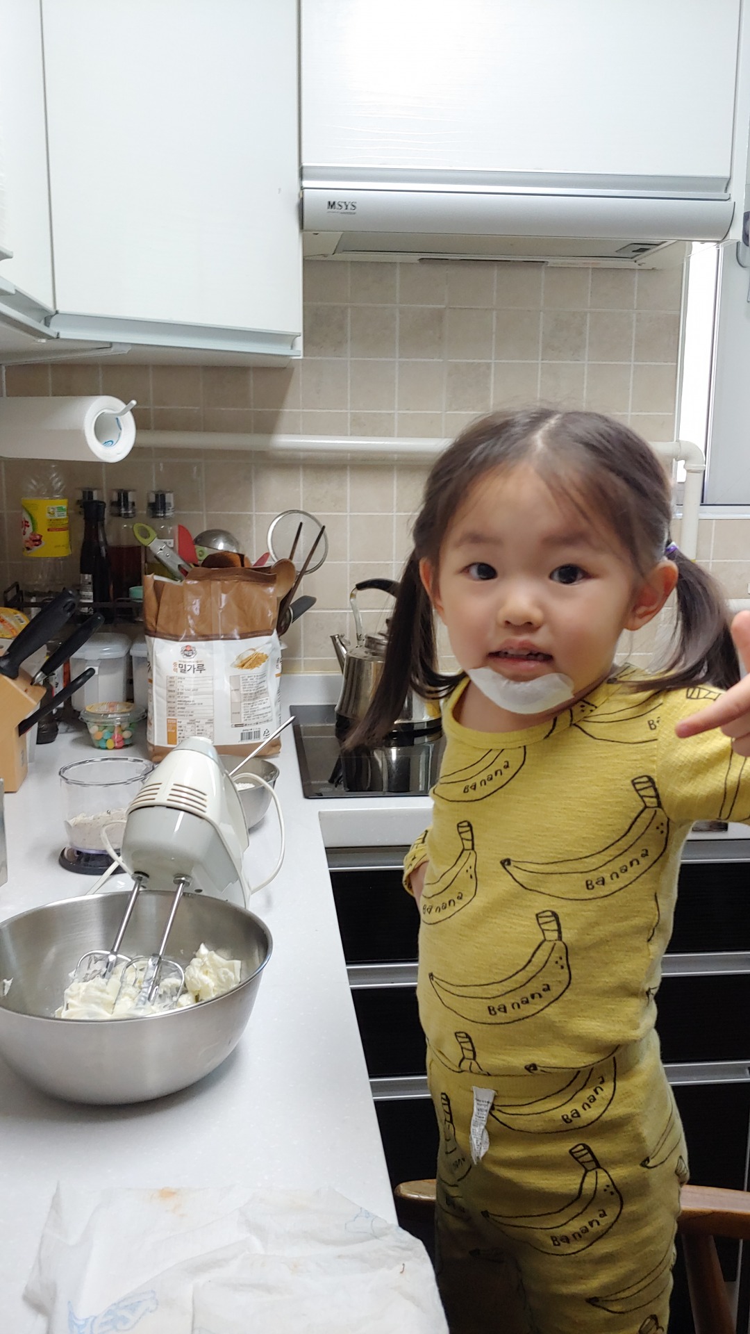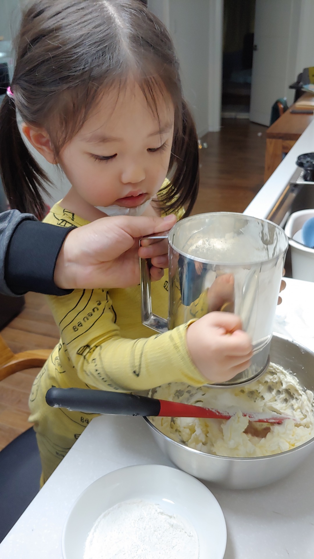 엄마의 지시에 따라 하나씩 따라하며 쿠키를 만드는 장래 희망이 요리사인 정서현…(* ̄0 ̄)ノ