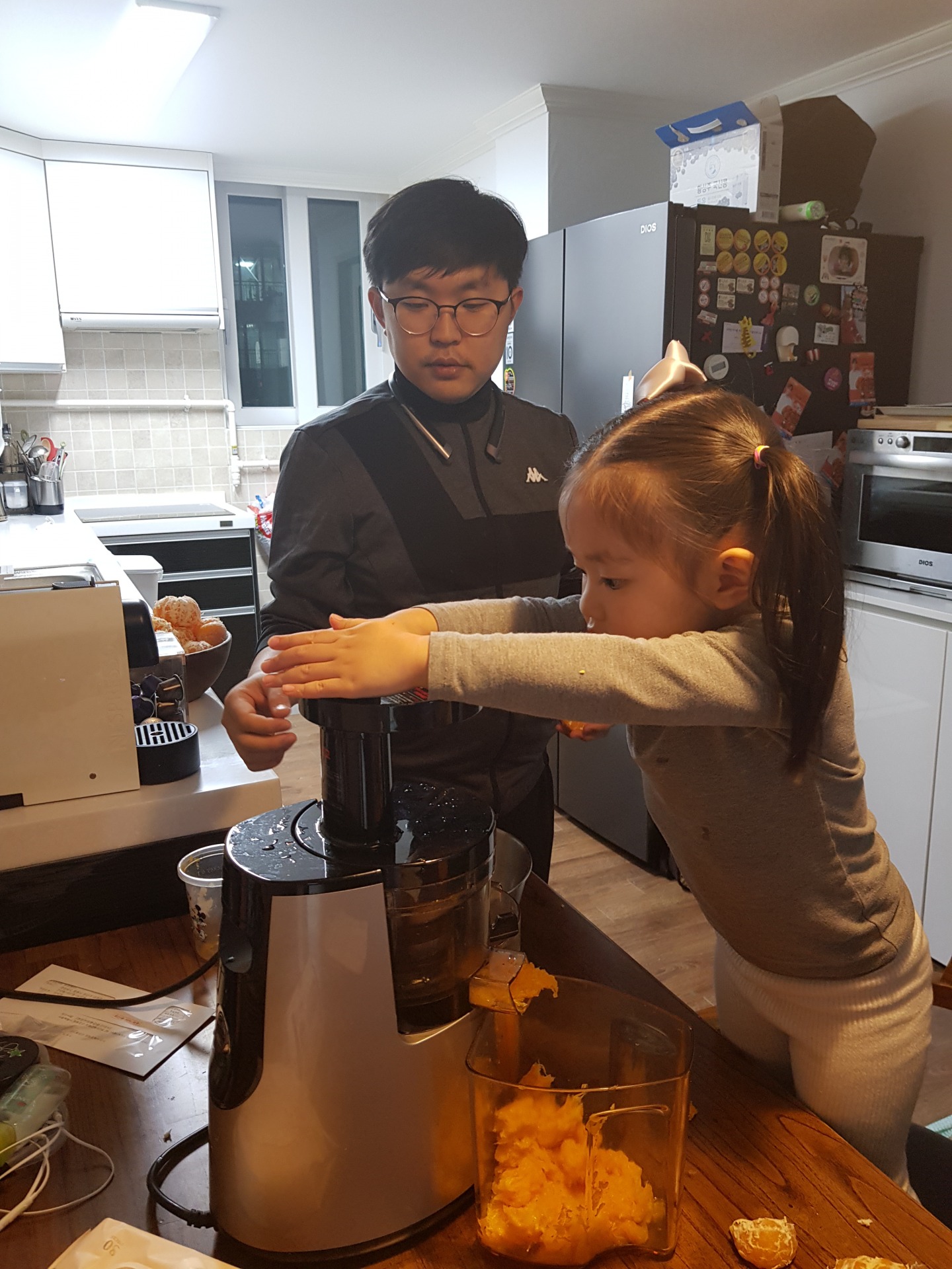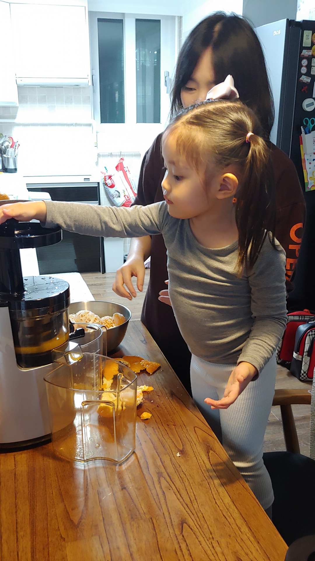 아빠가 박스로 산 귤이 처치 곤란해져서 귤 쥬스를 만들기로 했어요^^