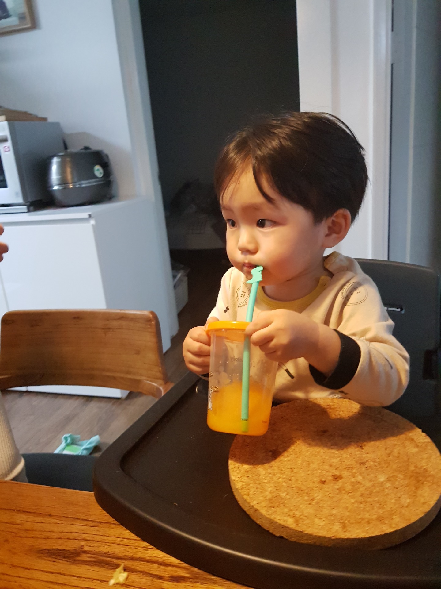 그러고나서 누구보다 먼저 완성된 쥬스를 드링킹~ 누구 아들인지 몰라도 굶어 죽진 않겠네요d=====( ̄▽ ̄*)b