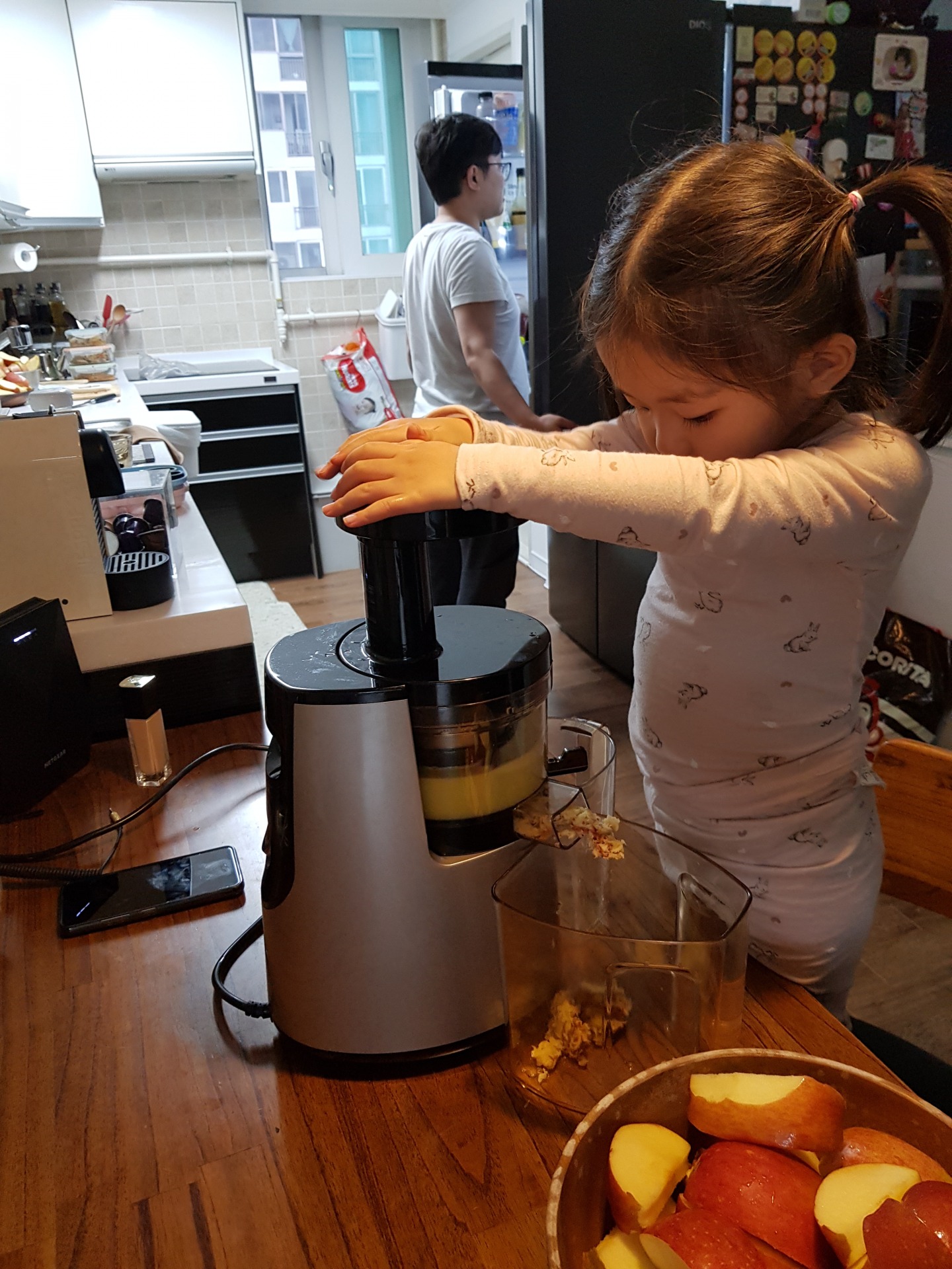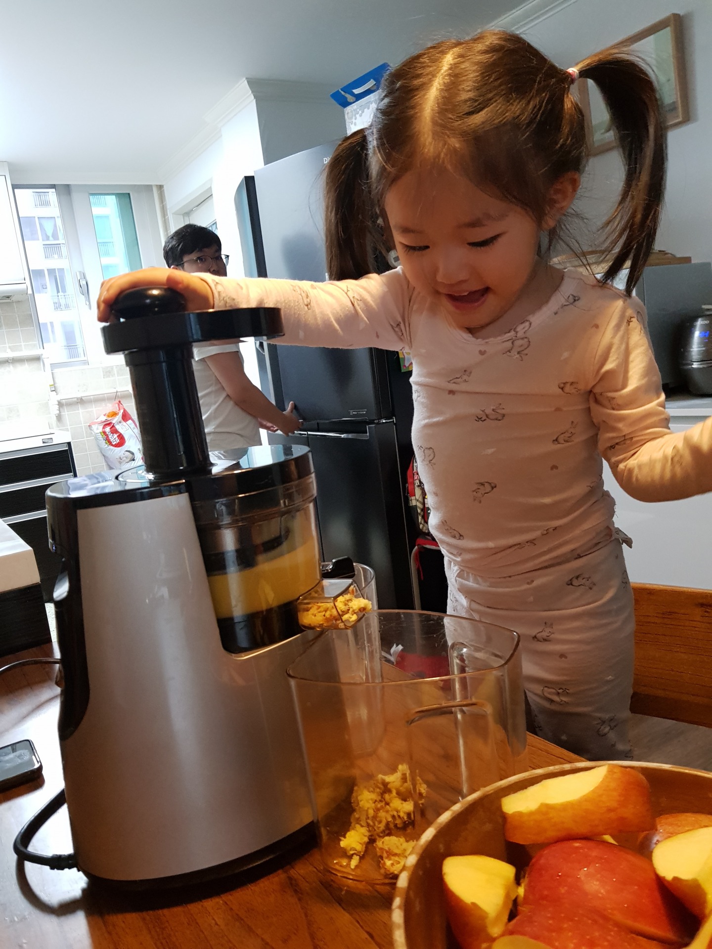 사과 쥬스 만들기 준비하고, 만들고 나서 정리 하는게 조금 귀찮긴 하지만 서현이가 저렇게 좋아하는걸 보면 안할수가 없네요^^