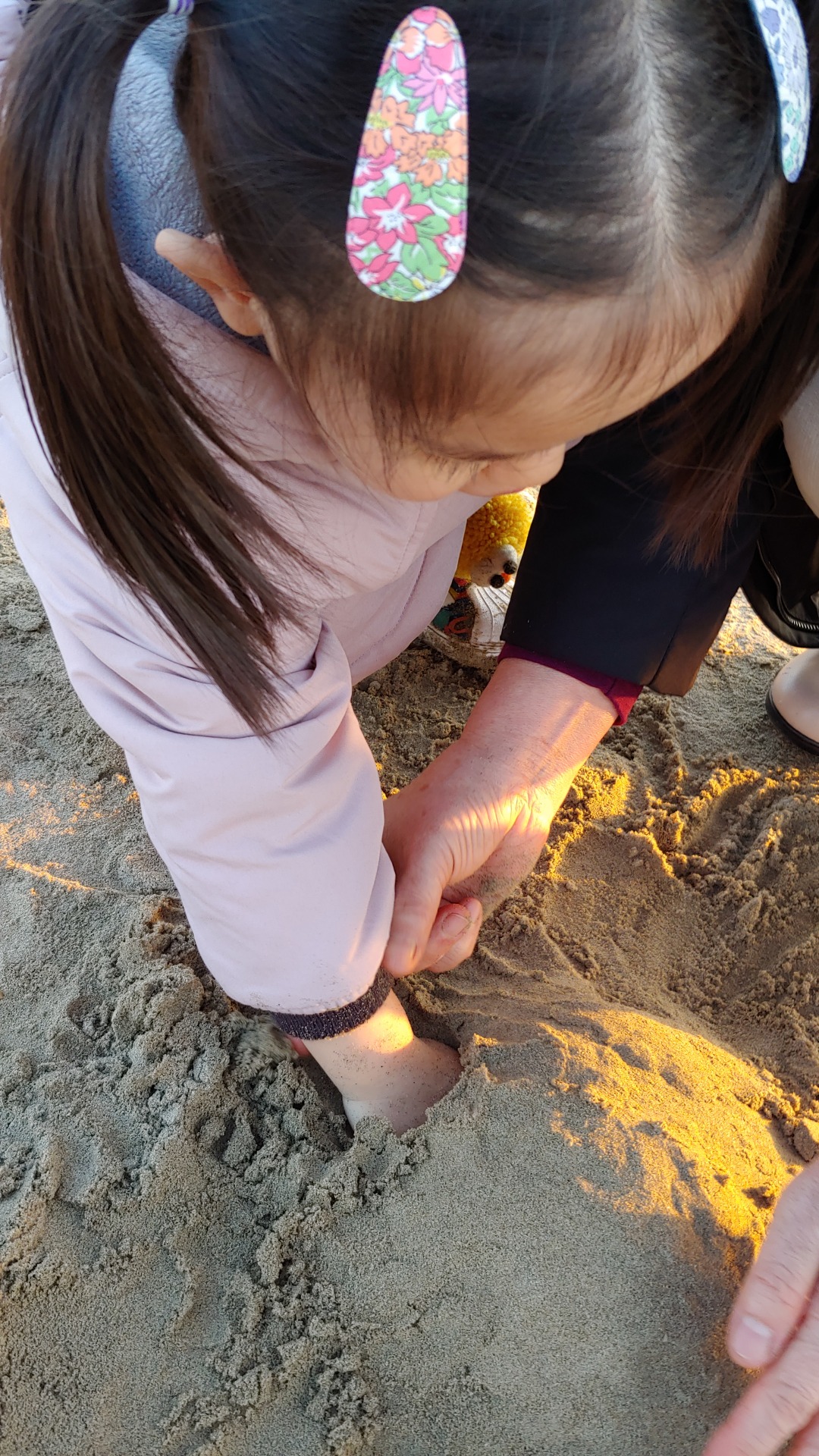 외할머니랑 두꺼비 집을 만들고 있었네요~