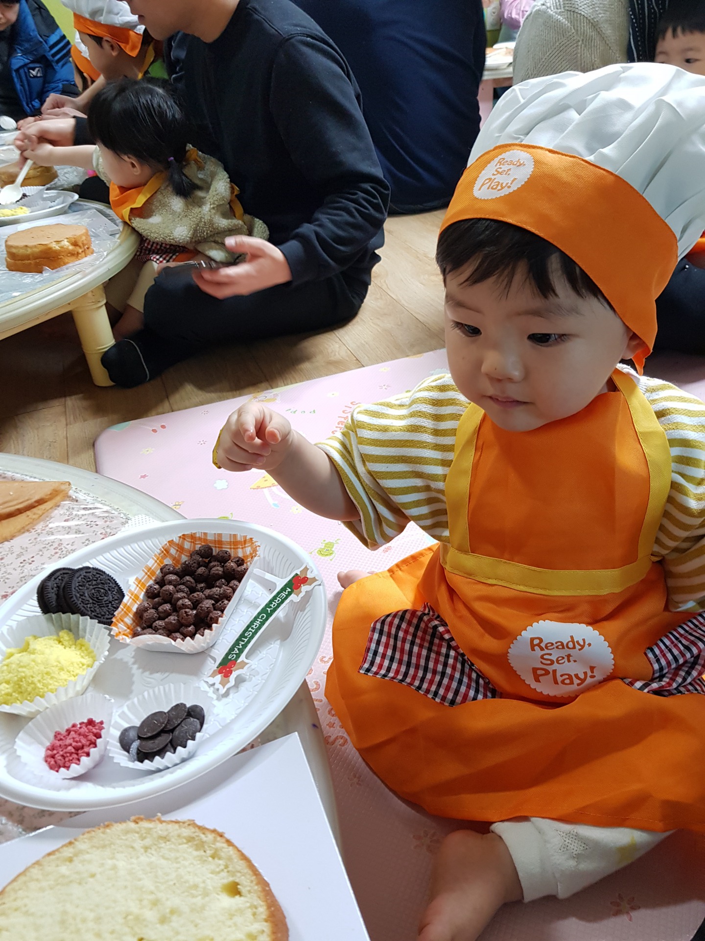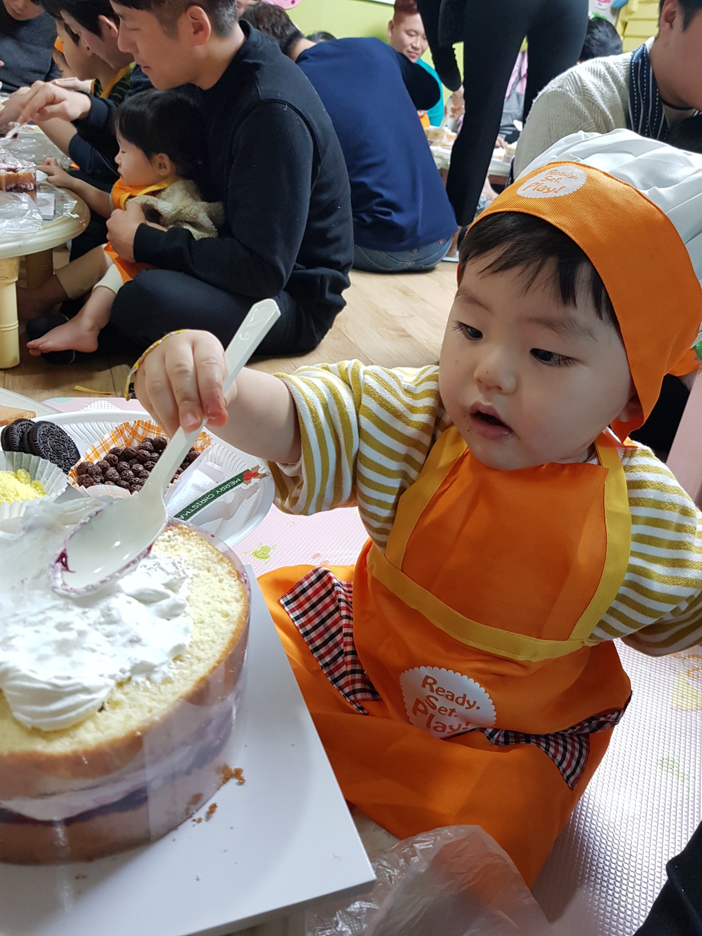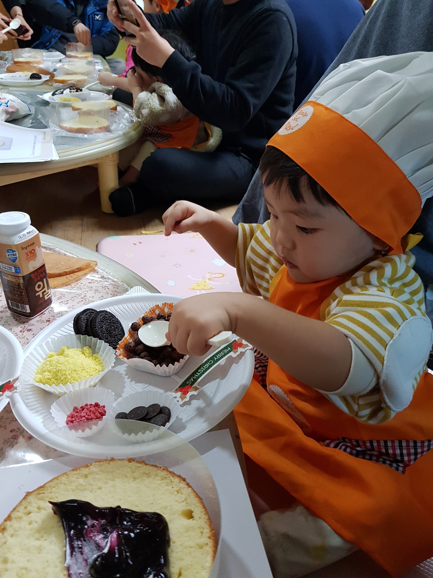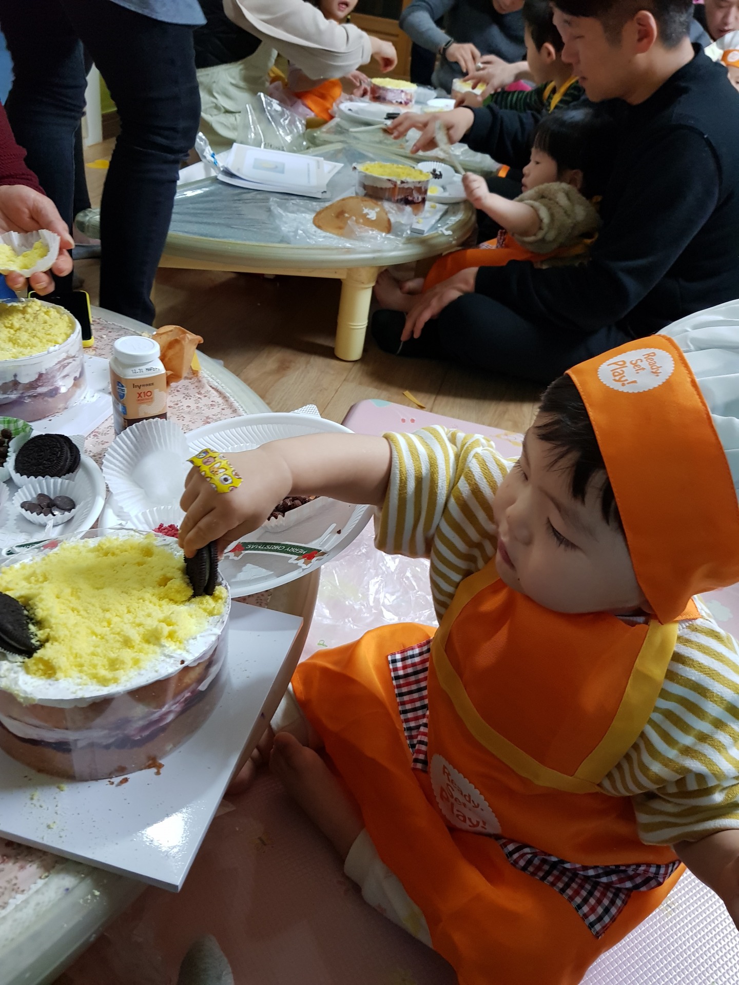 어린이집에서 연말에 학부모 참여 수업으로 케이크 만들기를 했습니다~