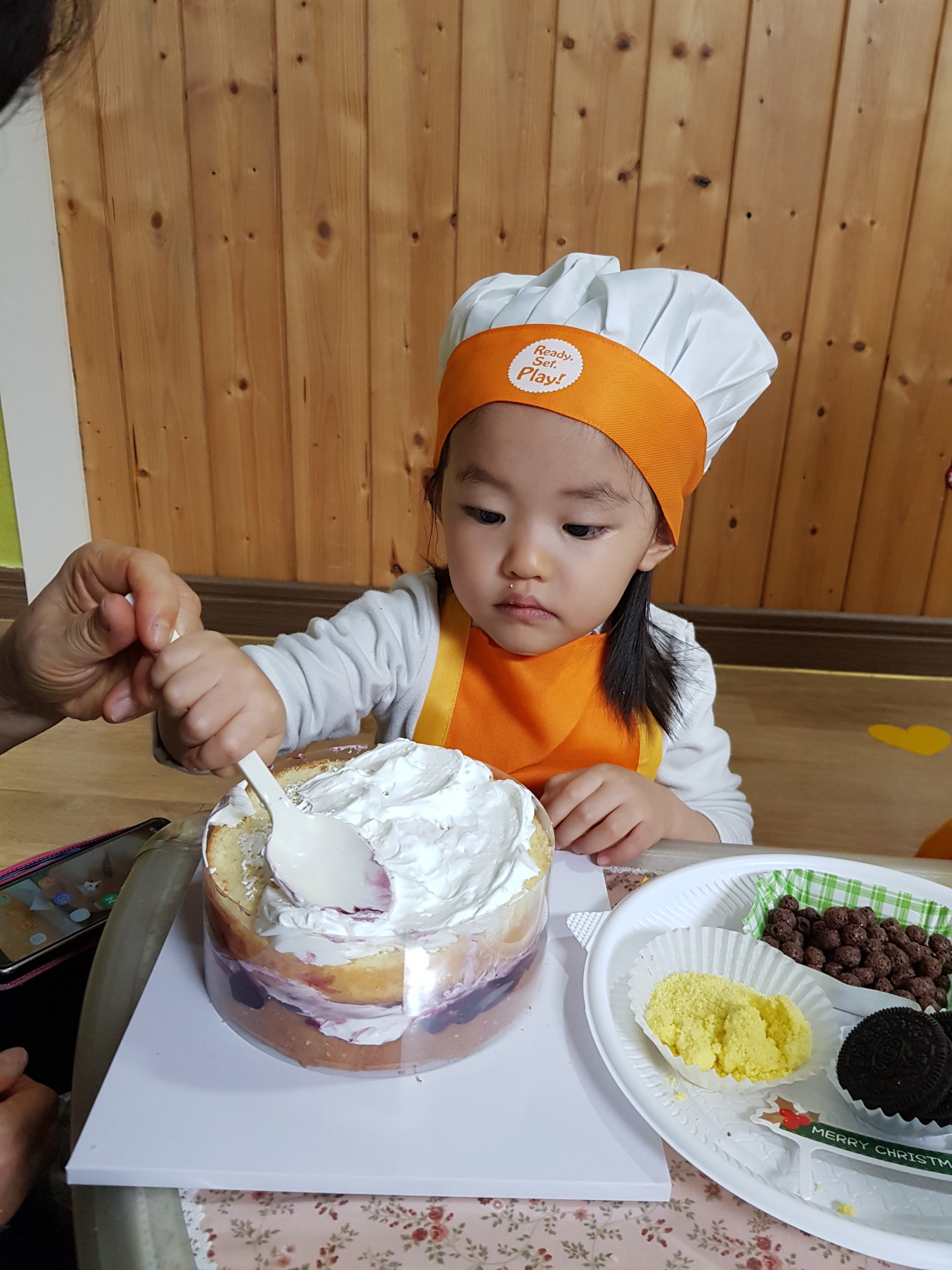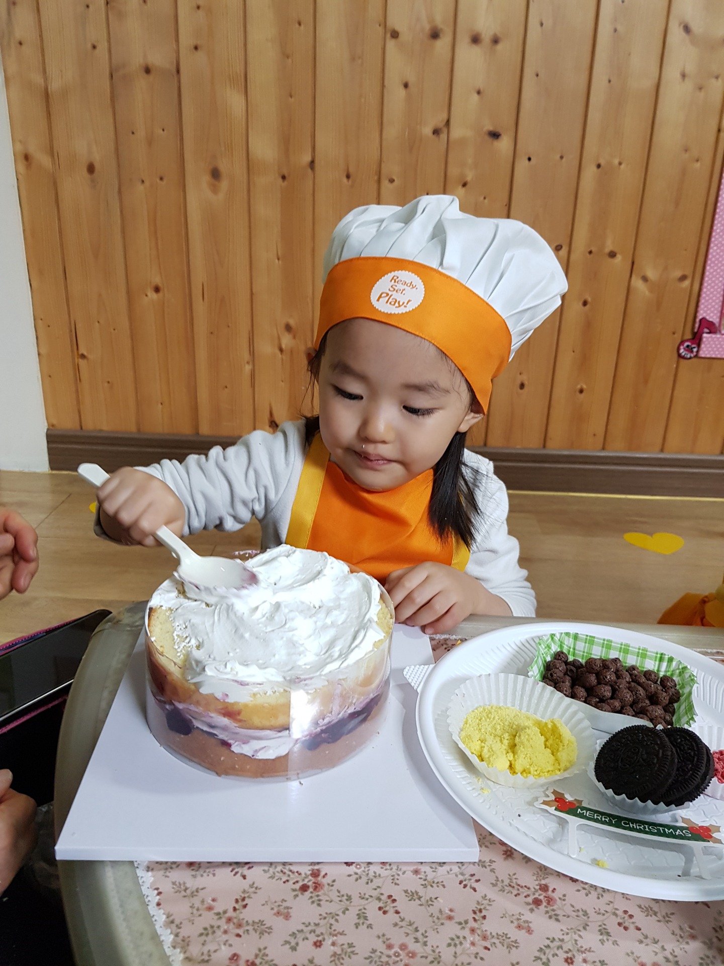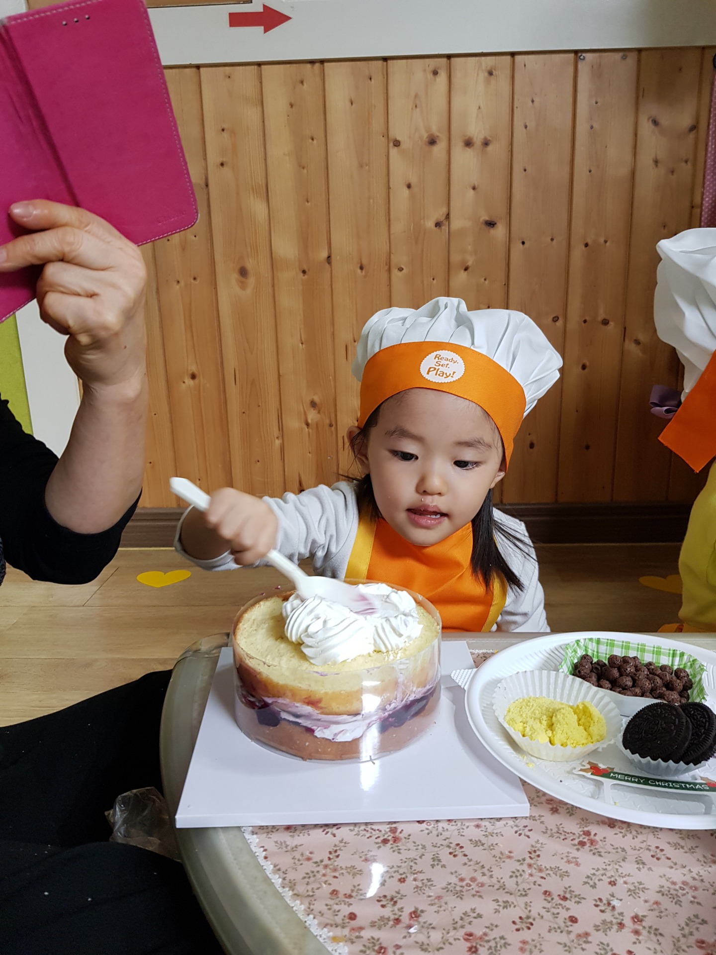 어린이집에서 연말에 학부모 참여 수업으로 케이크 만들기를 했습니다~